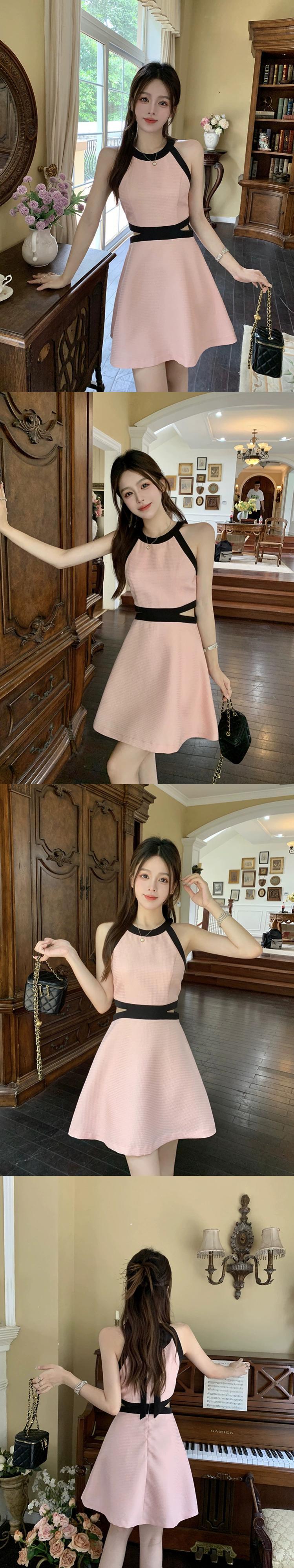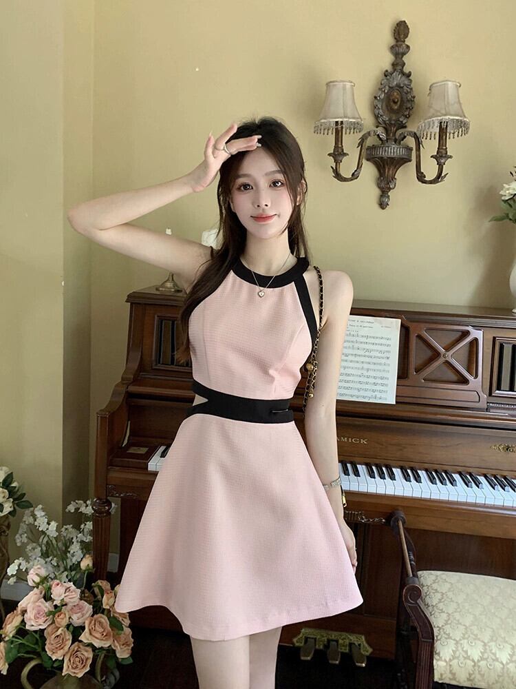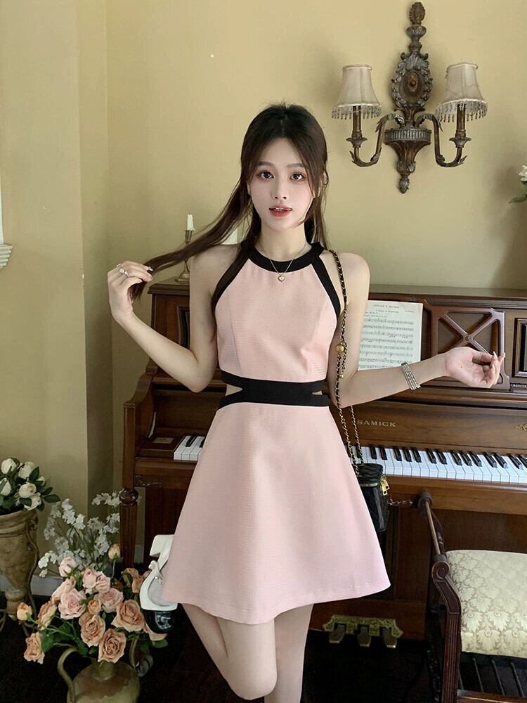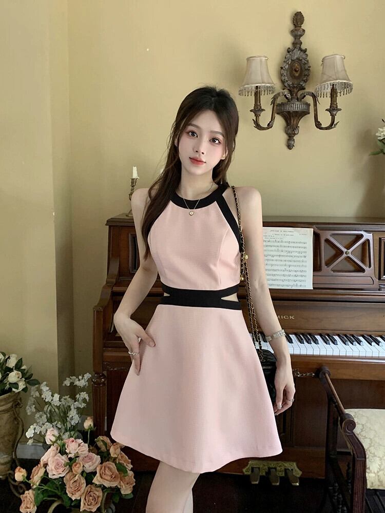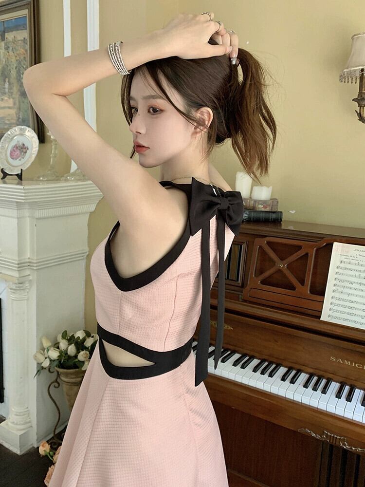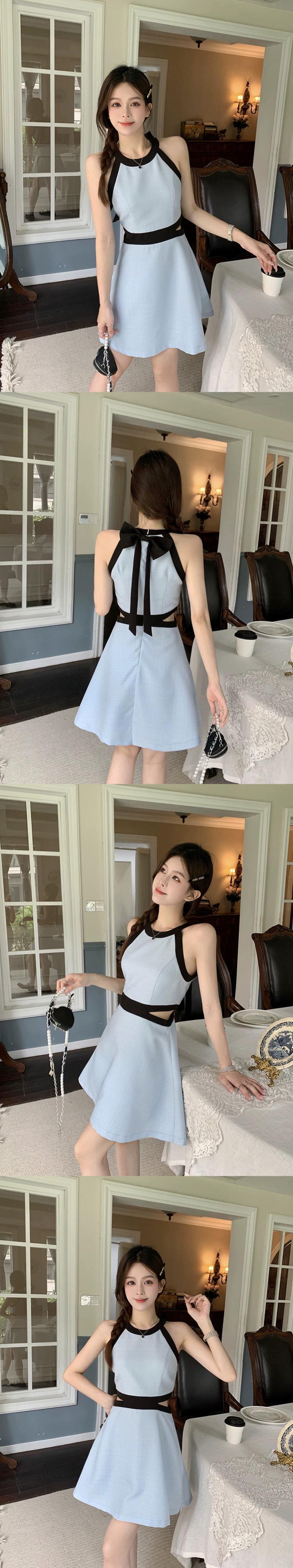 小さな香りの風ドレスの女性の 2023 夏の新しいデザインセンス中空アウトウエスト蝶ネクタイウエスト痩身 A ラインスカート リボン サマー 夏物 Aライン missk78601912339