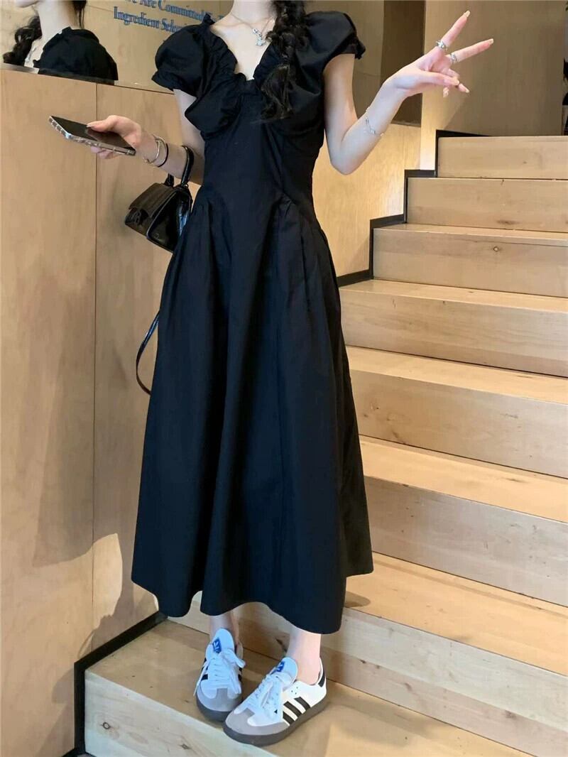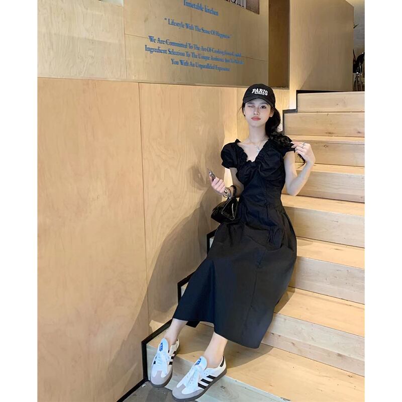 フレンチヘップバーンスタイル半袖ドレスの女性の夏 2023 新しいレトロ V ネックスリム気質ティーブレイクドレス ins サマー 夏物 Vネック missk17381321240