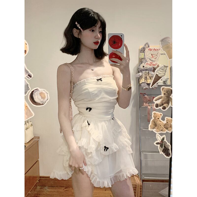フレンチリボンワンショルダードレス女性の夏の新しいハイウエスト小さなセクシーなふくらんでいるチューブトップショートスカート ハイウェスト サマー 夏物 missk95570909516
