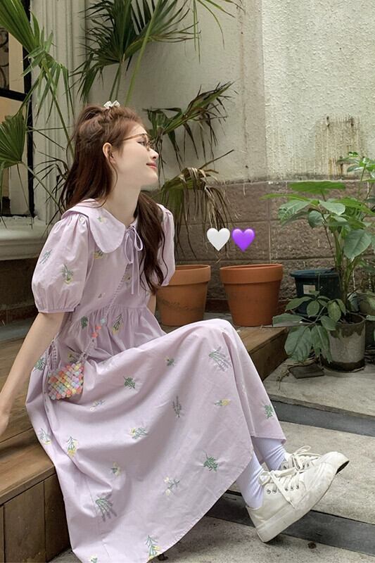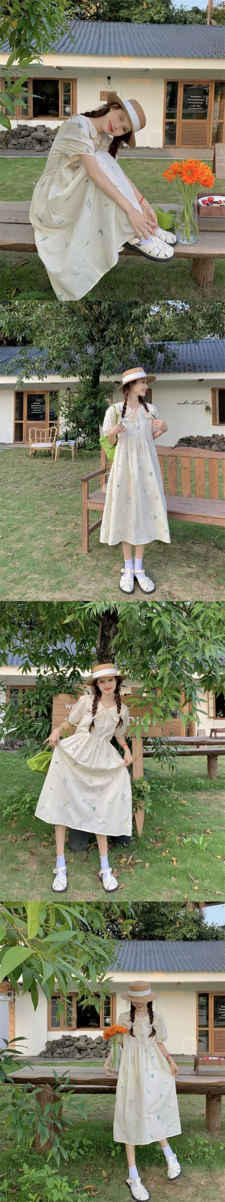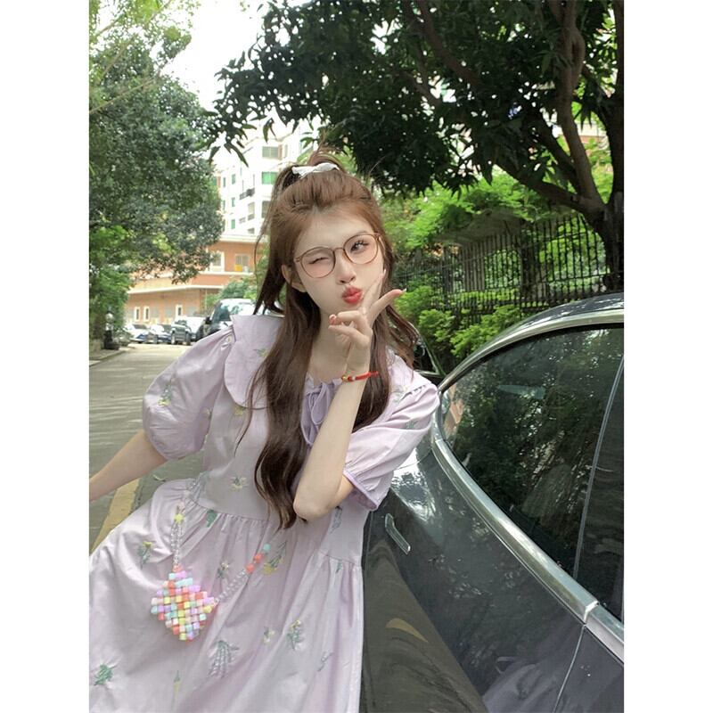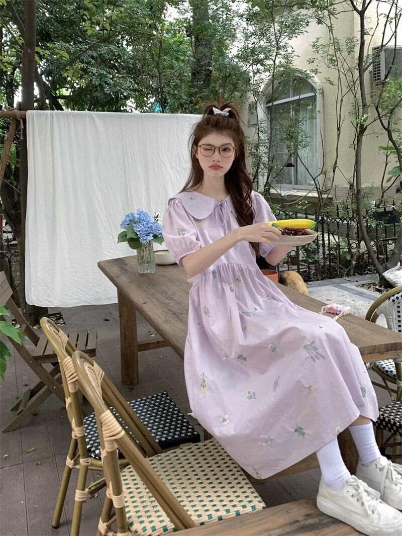ese かわいいフラワープリントドレス女性の夏の新しい人形の襟ファッション年齢を軽減するパフスリーブミドル丈スカート 大人ガーリー スウィート キュート カジュアル サマー 夏物 フラワーデザイン missk79541588455