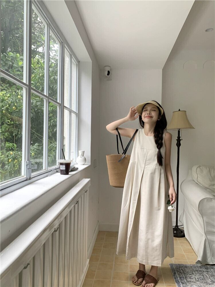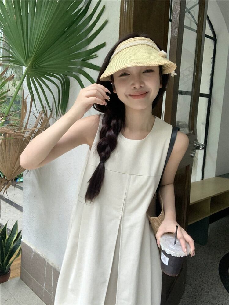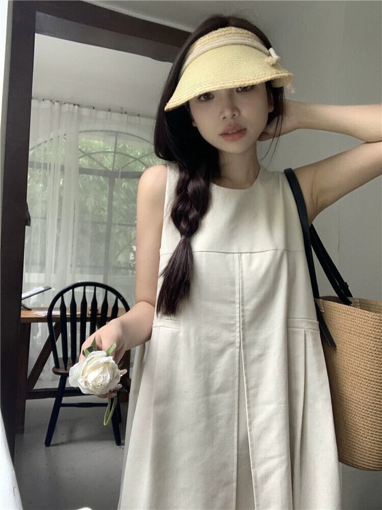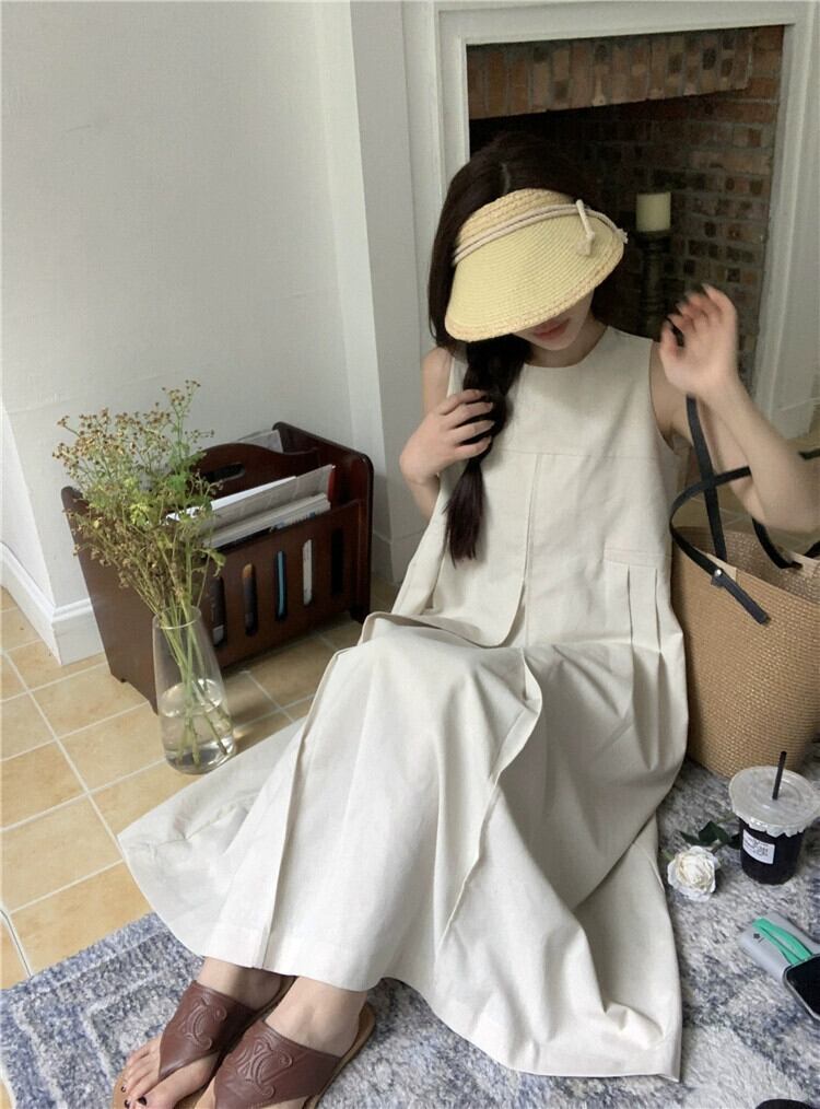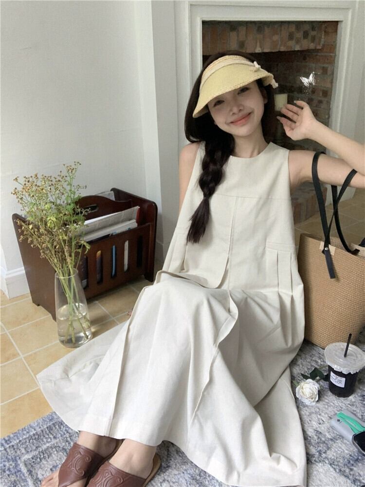 ノースリーブベストドレス女性夏バージョン 2023 新しいシックなシンプルな無地ルーズミッドレングス A ラインスカート サマー 夏物 Aライン ソリッドカラー missk68255931121