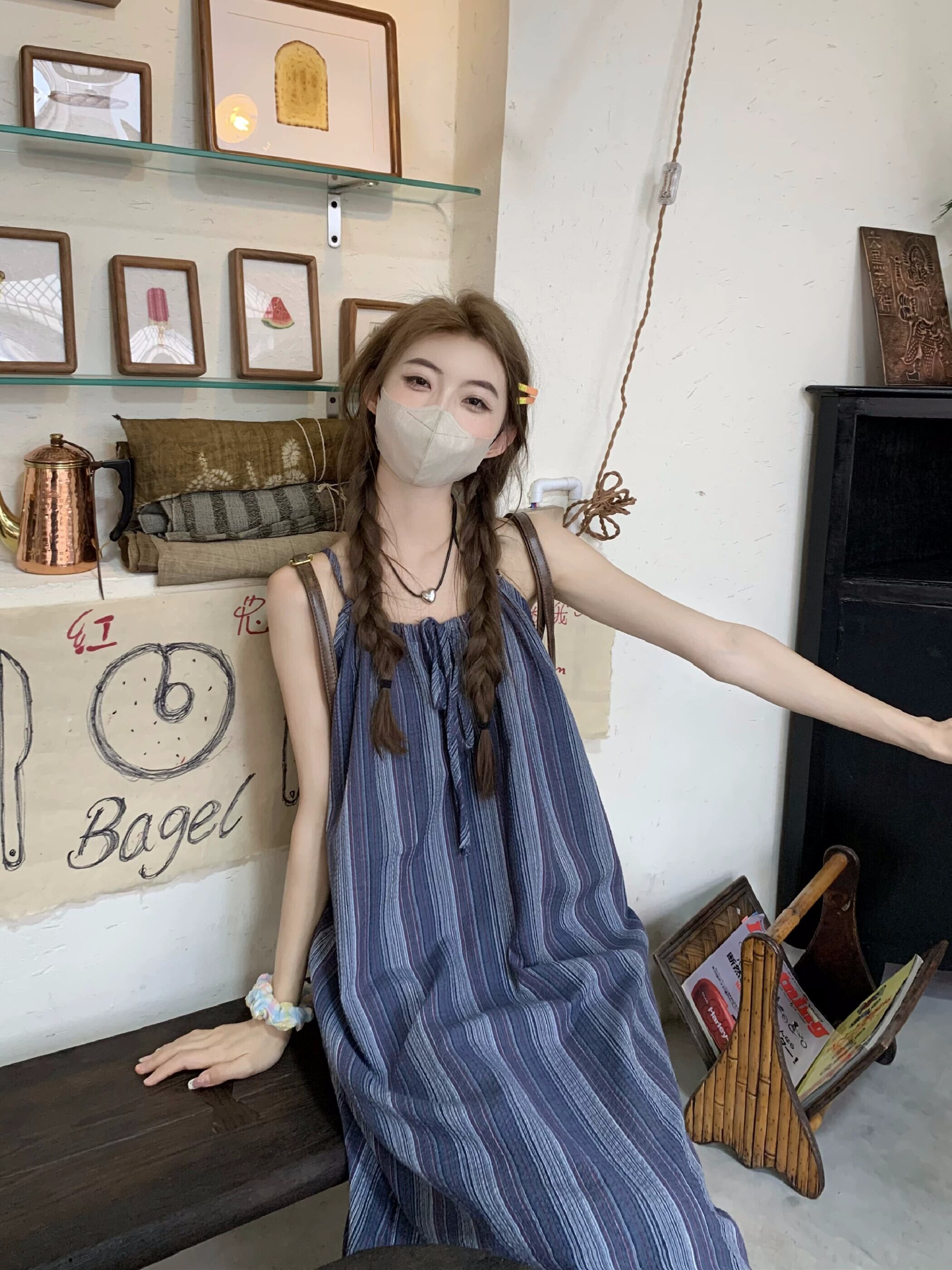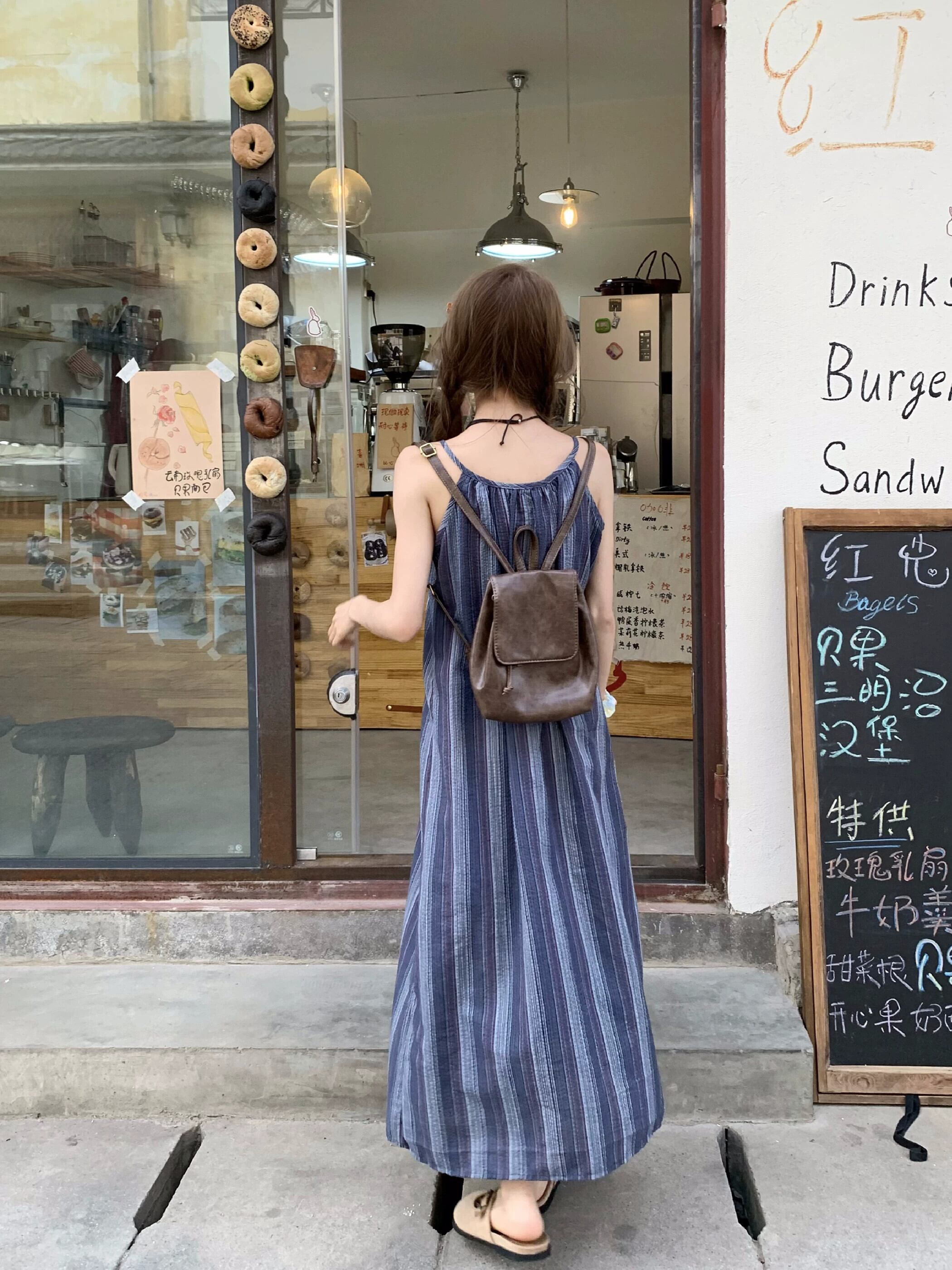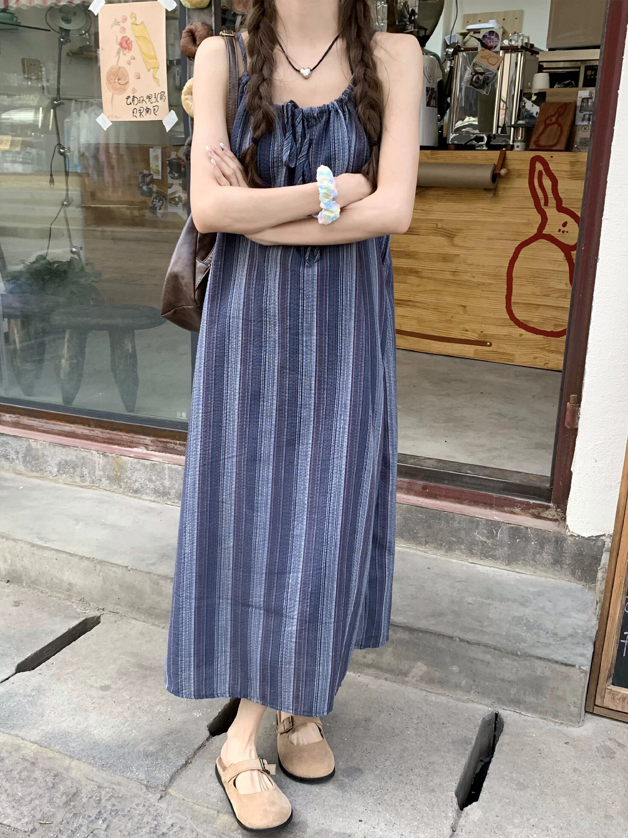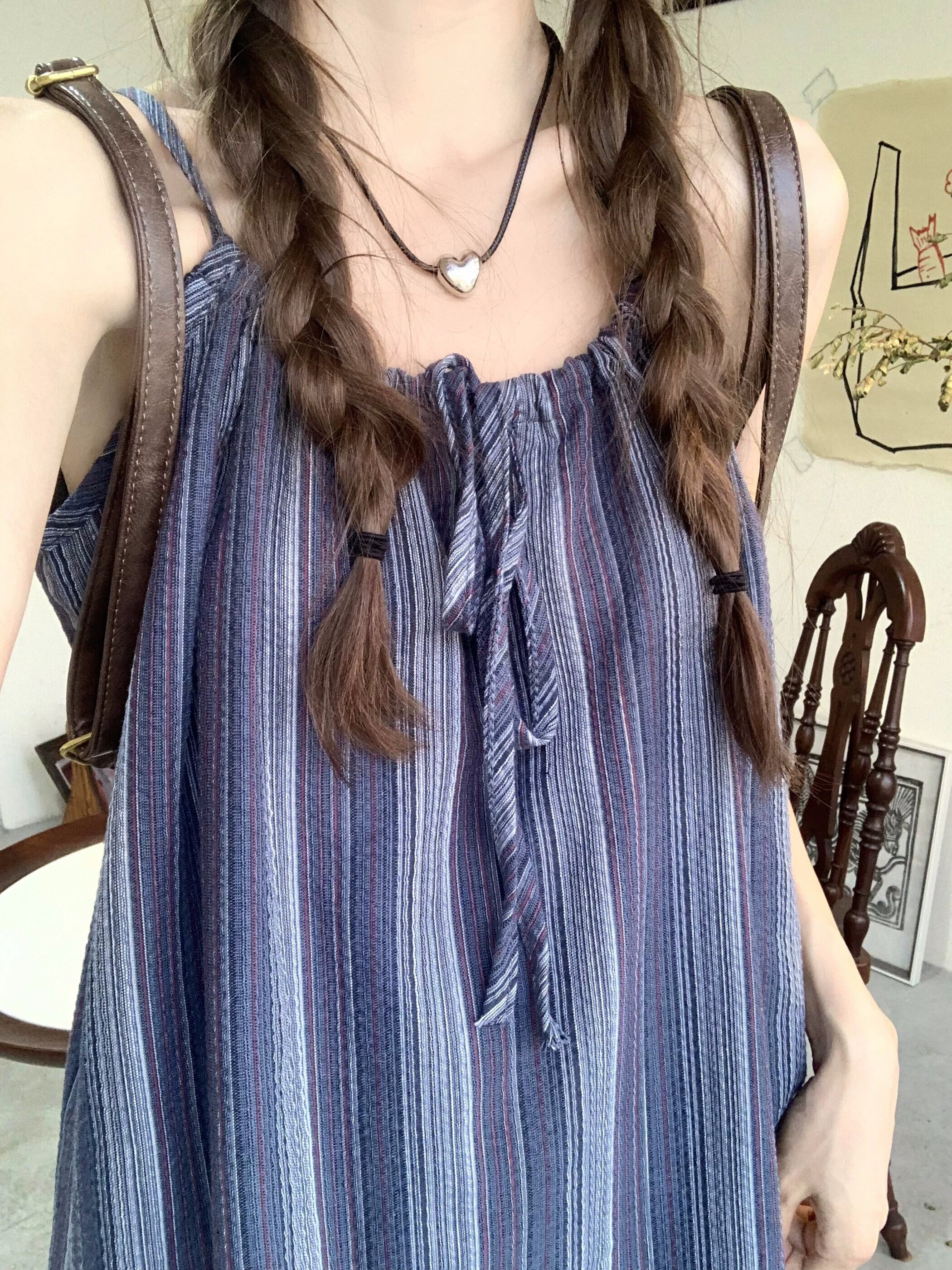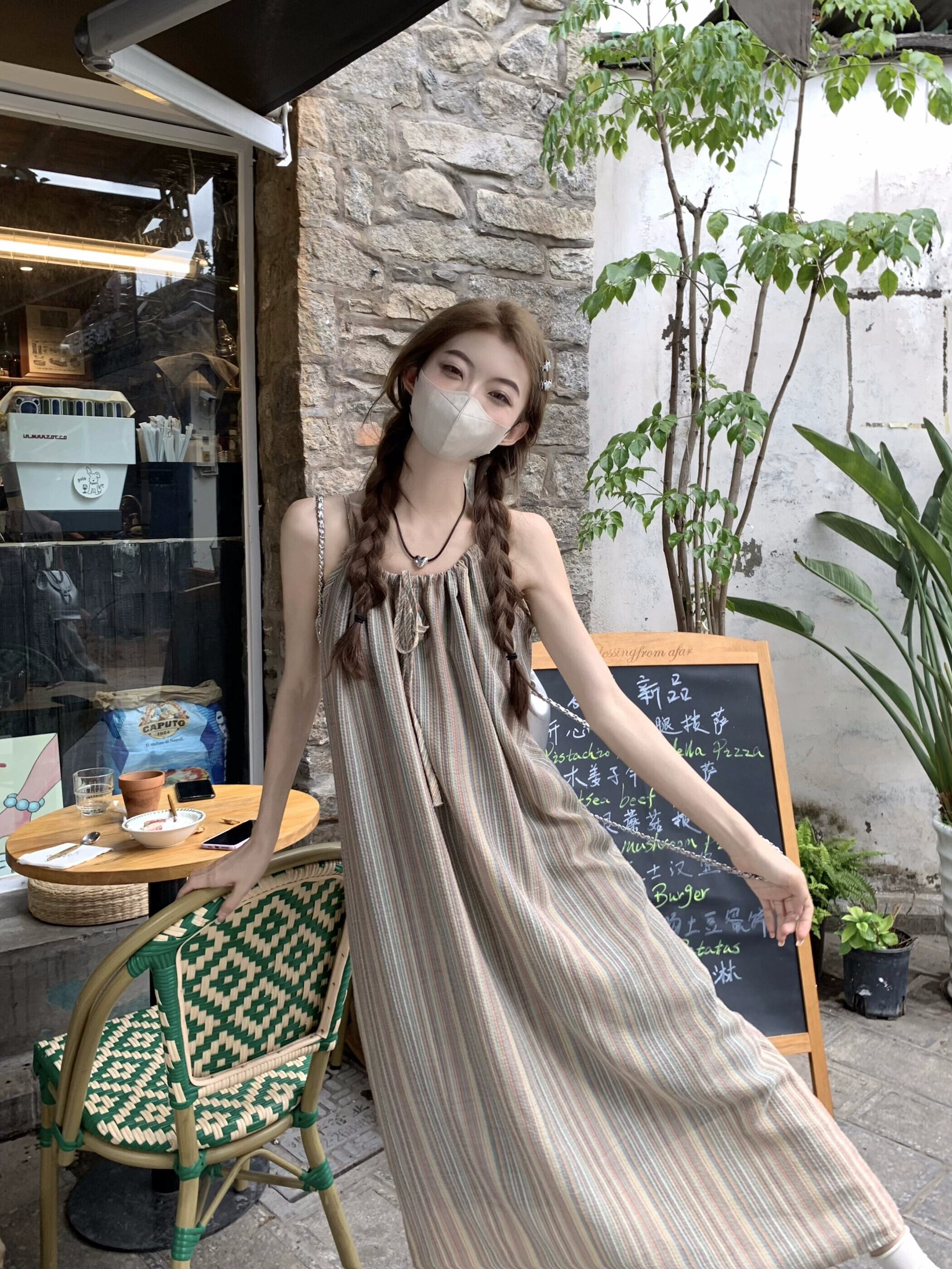 ホリデースタイルストライプストラップサスペンダードレス女性の夏のスタイル2023新しいファッション気質デザインセンスロングスカート サマー 夏物 missk69945913713