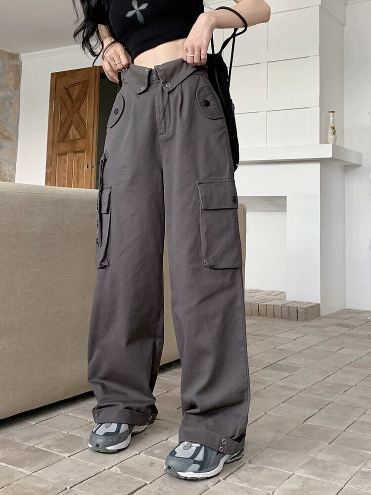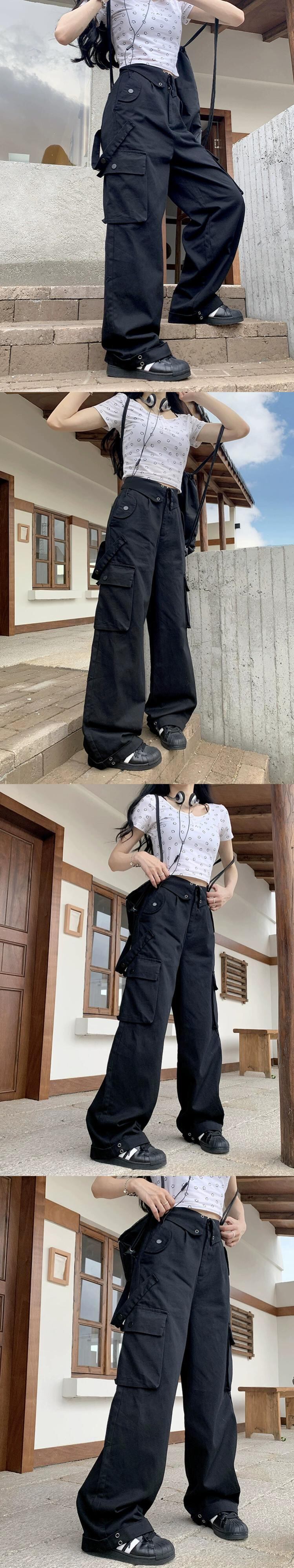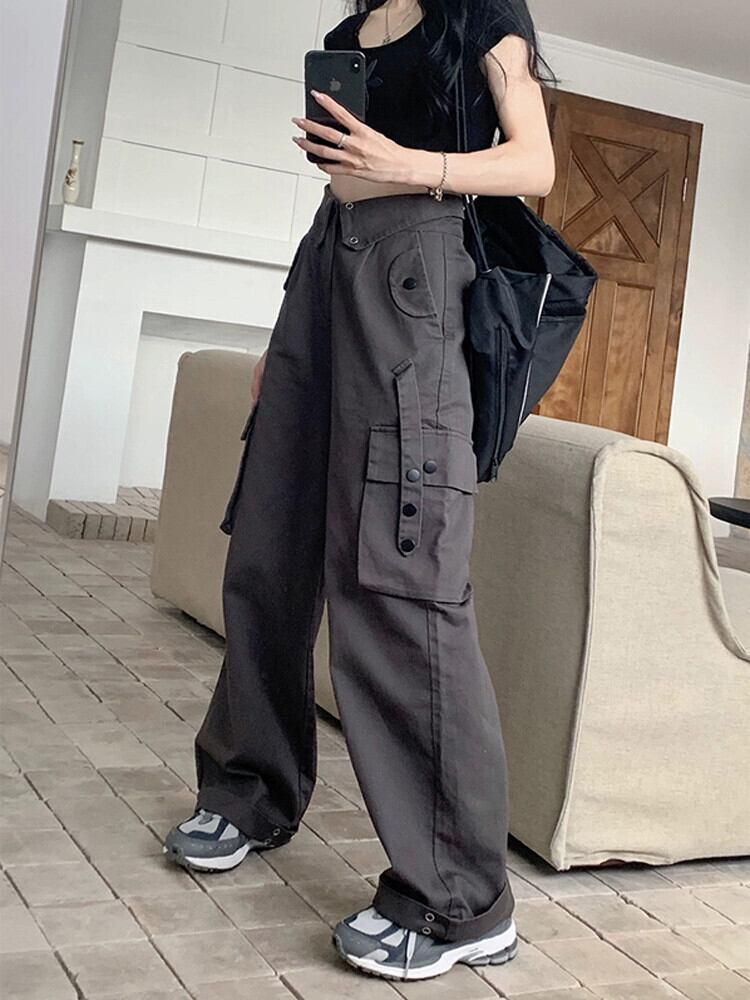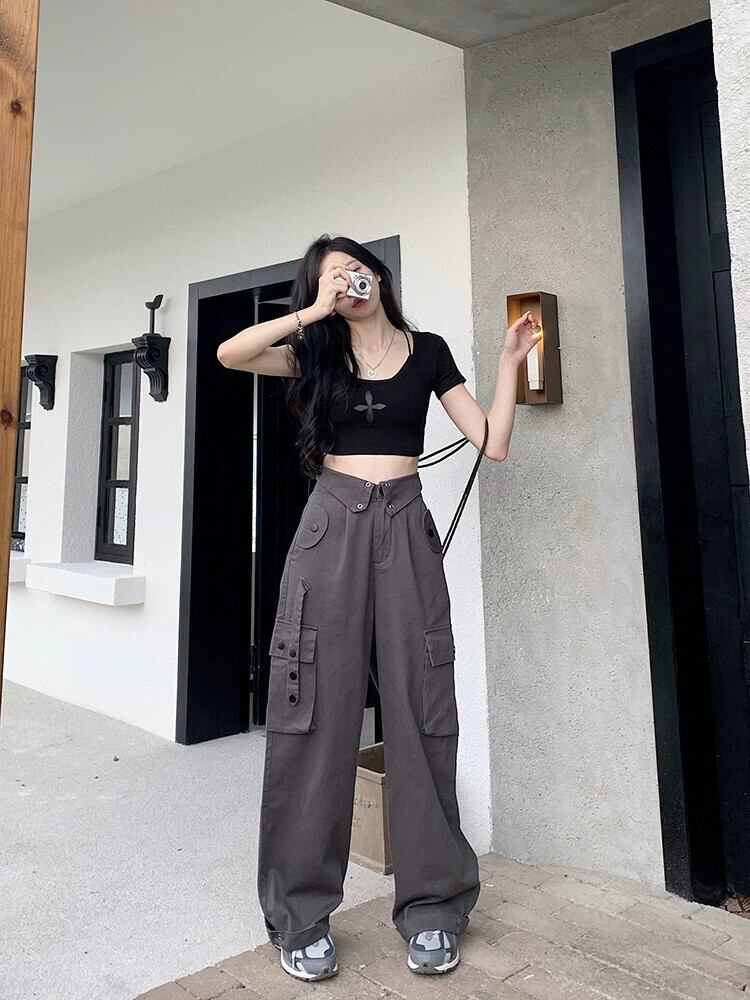 アメリカンストリート重工業カジュアルパンツレディース夏新作マルチポケットハイウエストオーバーオールクールワイドレッグロングパンツ潮 サマー 夏物 ポケット多め missk39698840769
