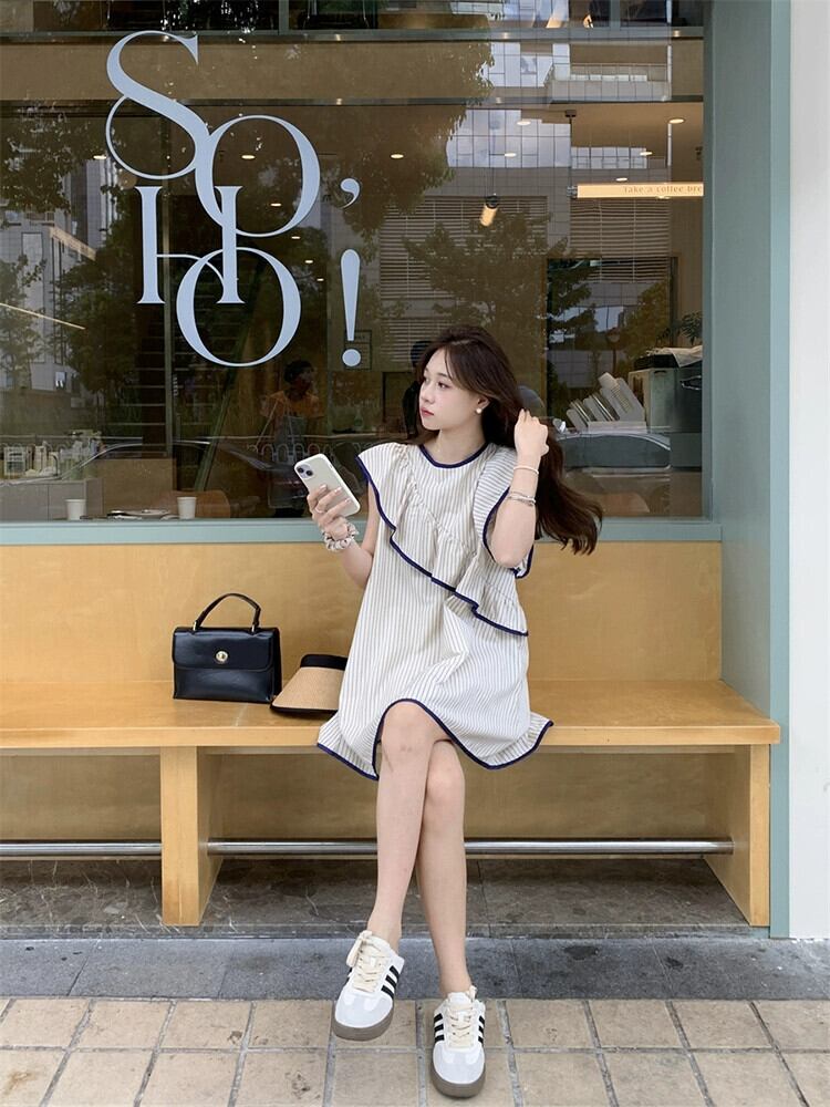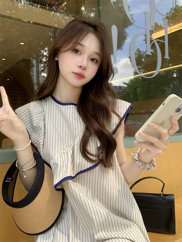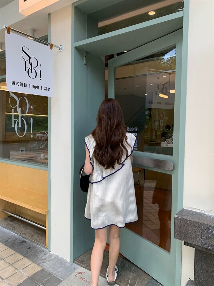 ストライプ小さなフライングスリーブドレスの女性の夏の2023新しいスタイルフリル不規則なノースリーブドールスカート ラッフル サマー 夏物 missk34185797550