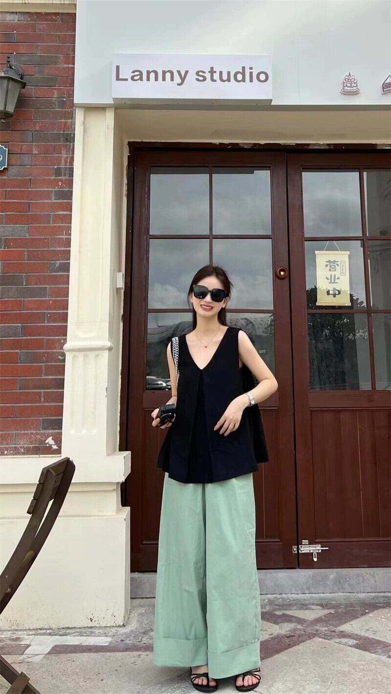 純粋な着用したい V ネックベストトップハイウエストワイドレッグカジュアルパンツ女性の夏の 2023 新しいファッションスーツ ハイウェスト サマー 夏物 Vネック missk93269442112