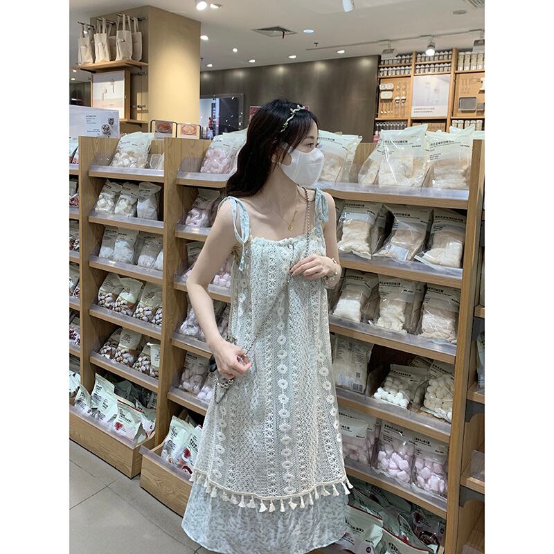 -エンドフリンジステッチドレスレディース夏新しいレトロシックな気質薄い休日サスペンダーロングスカート サマー 夏物 missk14356207324