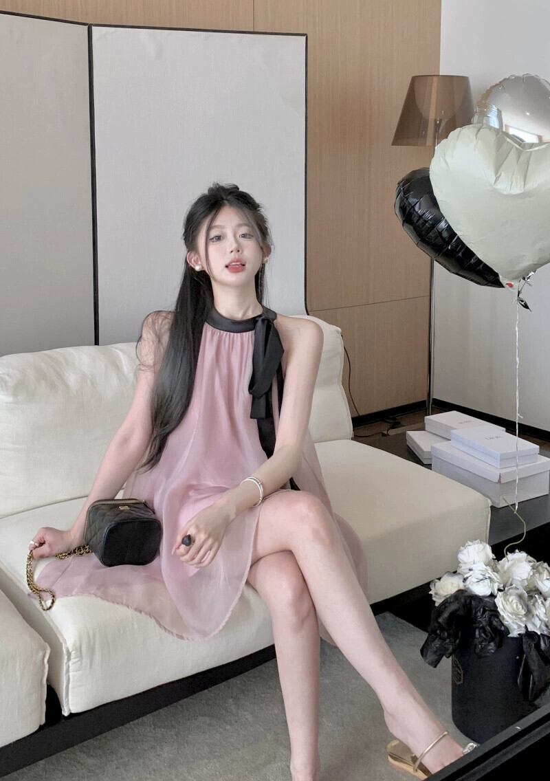 甘いノースリーブホルターネックドレス女性の夏 2023 新しいプリンセススタイルストリートスタイルストラップデザイン痩身ショートスカート 大人ガーリー スウィート キュート カジュアル サマー 夏物 missk82923805543