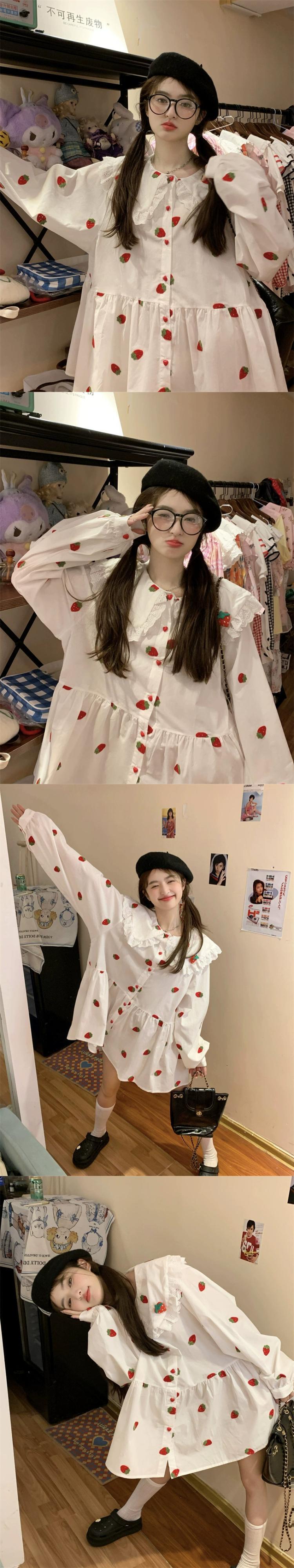 甘いスタイル長袖ドレスの女性の秋 2023 新デザイン重い刺繍人形の襟ルーズスカート ロング 大人ガーリー スウィート キュート カジュアル オータム 秋物 missk98915707592