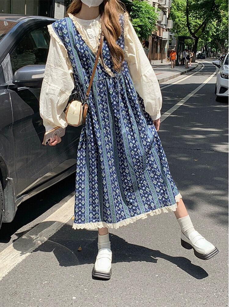 レトロレース V ネックベストドレス女性の夏 2023 新しいスタイル花柄ルーズアウターロングスカート サマー 夏物 Vネック missk53691199493
