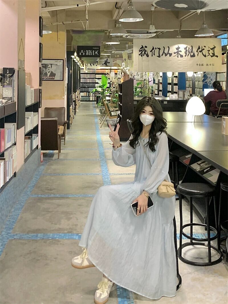 フランスの優しいスタイルの長袖ドレスの女性の秋 2023 新しいルーズラウンドネック年齢軽減ニッチスプライシングロングスカート オータム 秋物 Oネック missk5348219865