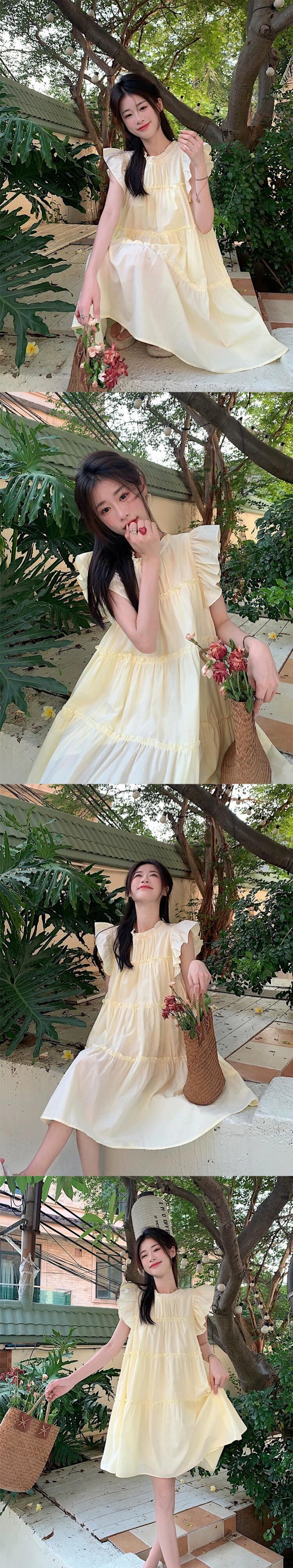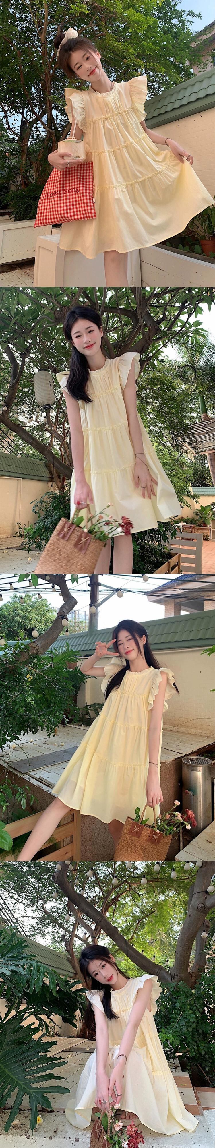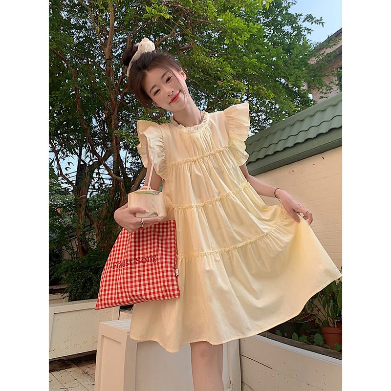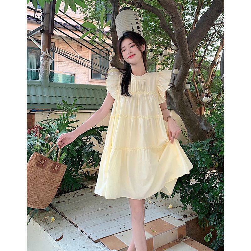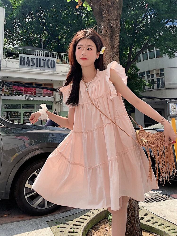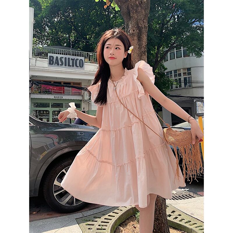 Feifei スリーブドレスの女性の 2023 夏の新しいスタイル優しいスタイル真菌ピンク年齢を減らすルーズ A ラインスカート サマー 夏物 Aライン missk5293749623