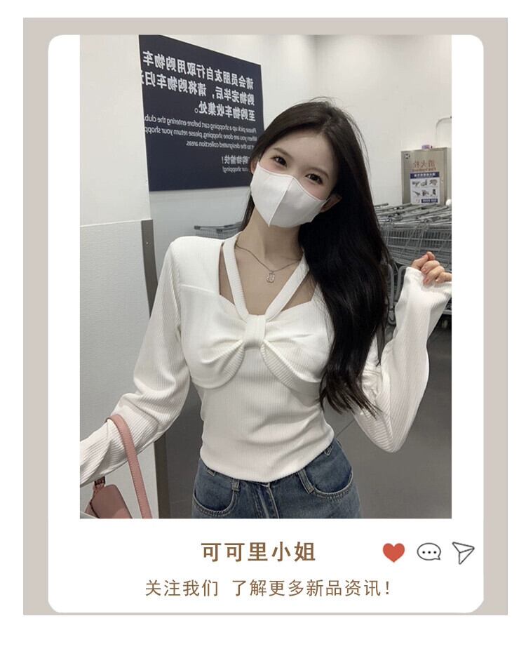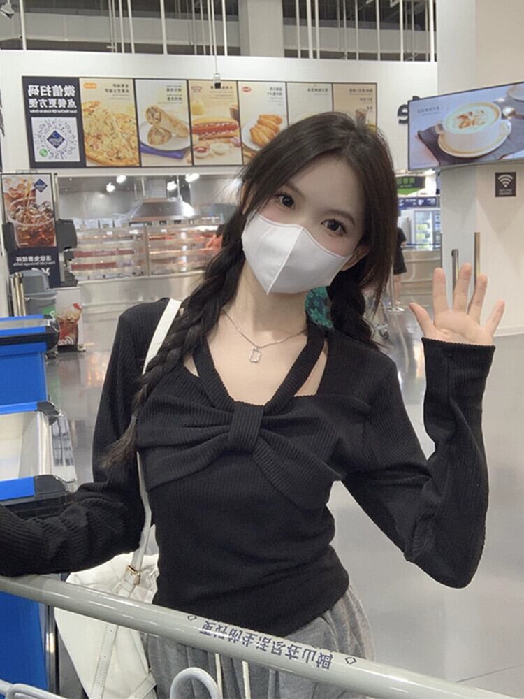 ed 甘辛ボトミングセーター女性秋バージョン 2023 新しいスリムフィット弓長袖トップ ロング リボン 大人ガーリー スウィート キュート カジュアル オータム 秋物 missk47520303055