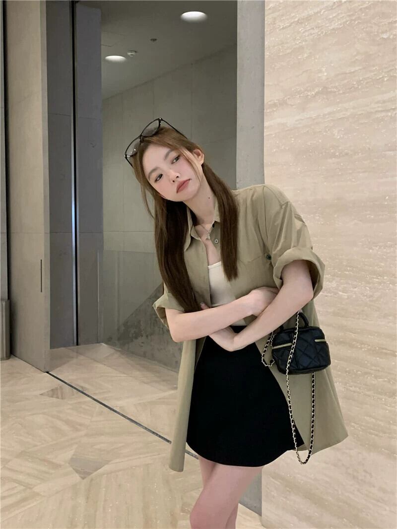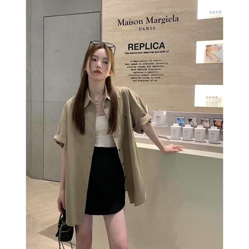 シングルブレスト半袖日焼け防止シャツ夏の新デザインラペルファッションカジュアルルーズ多目的トップス女性 サマー 夏物 missk17424118689