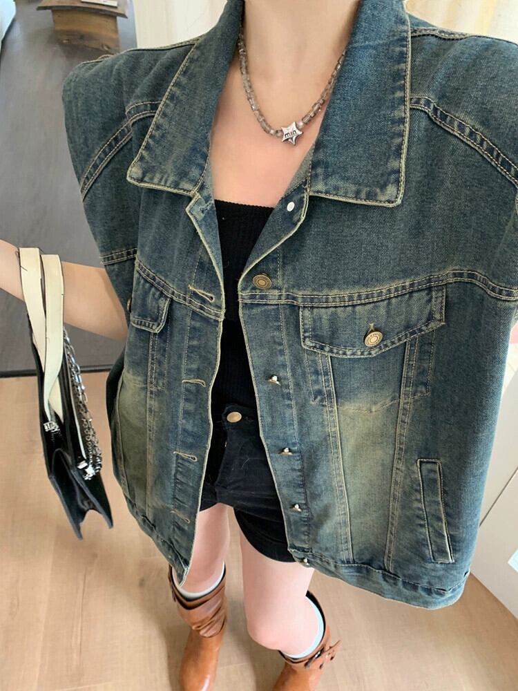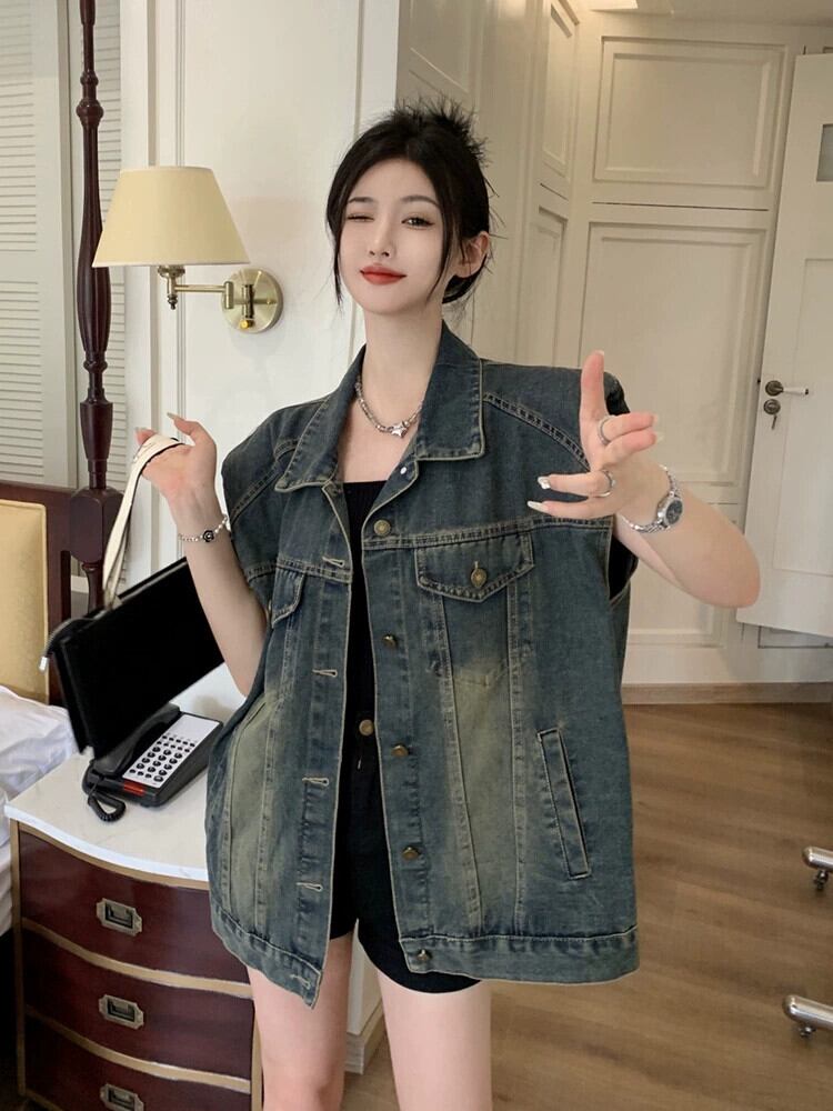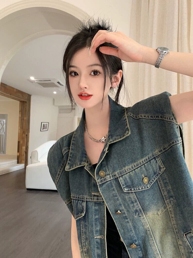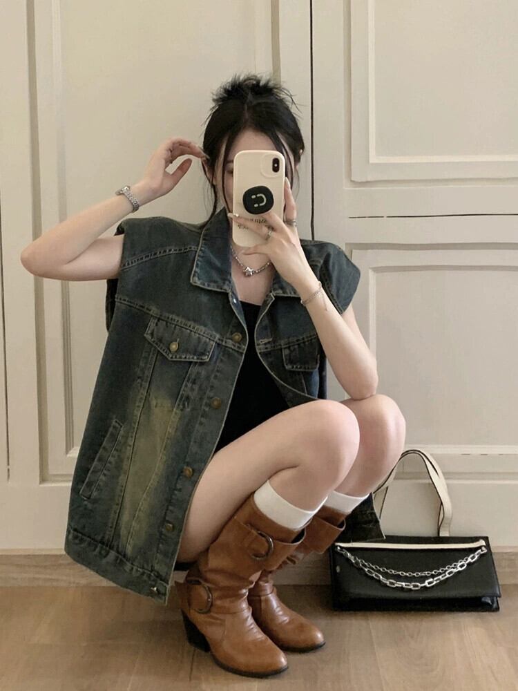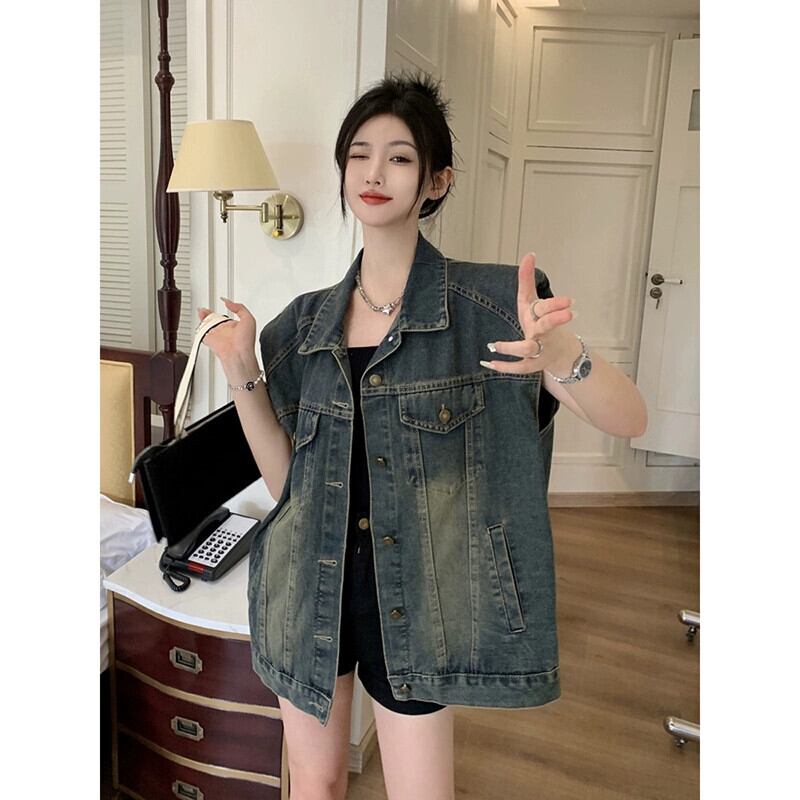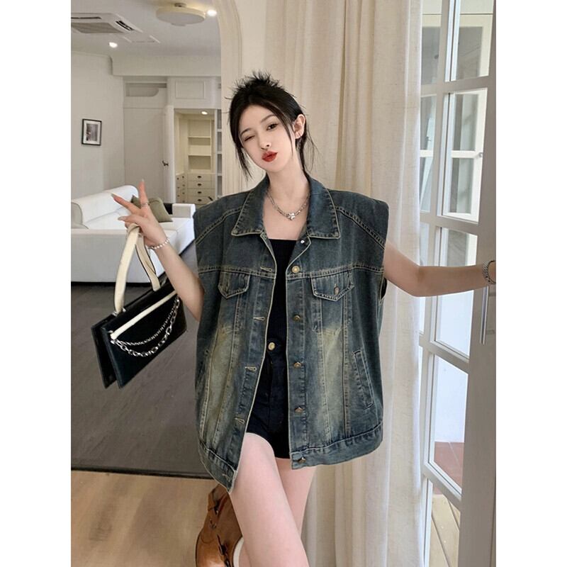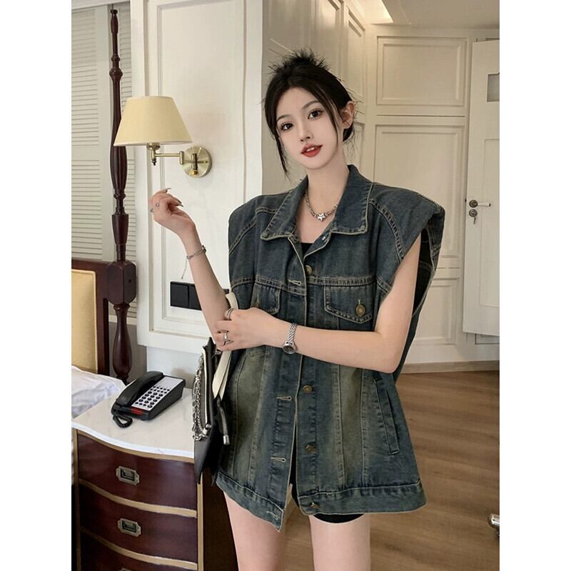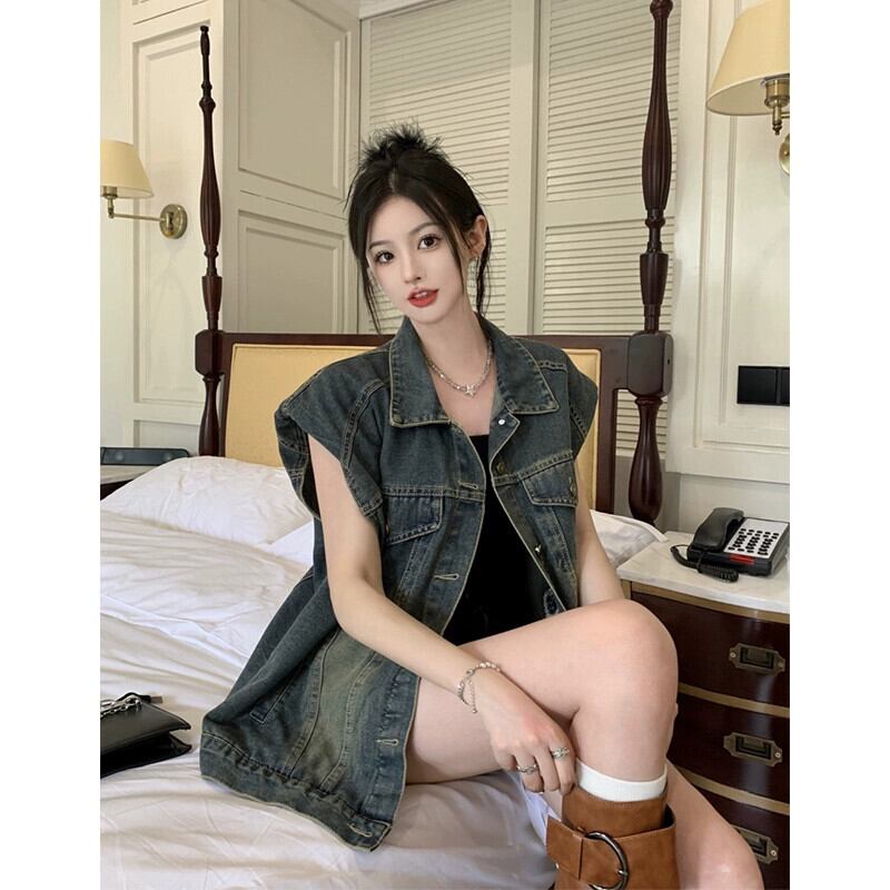 2023 夏の新スタイルのレトロなルーズファッション洗浄ミッドレングスデニムノースリーブベストベスト女子学生イン サマー 夏物 missk4085949972