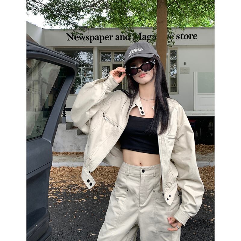 甘くてクールなデザインのショート長袖ワークジャケットハイウエストワイドレッグパンツ女性秋 2023 新しいファッションスーツ ロング 大人ガーリー スウィート キュート カジュアル オータム 秋物 missk60853898546