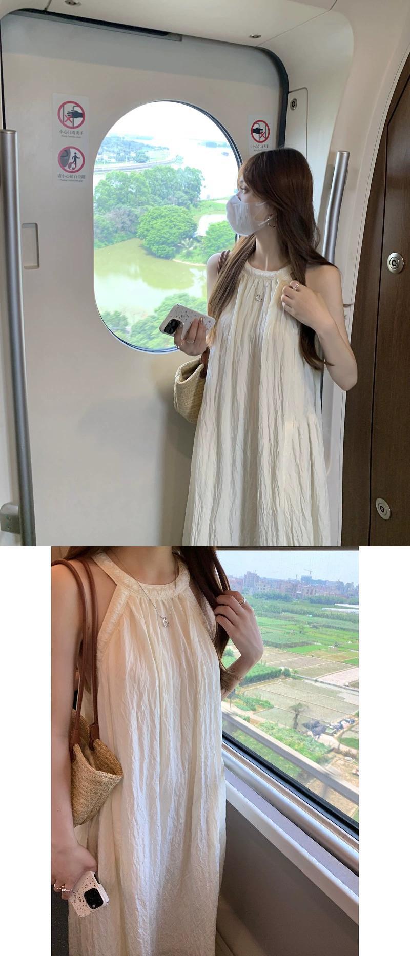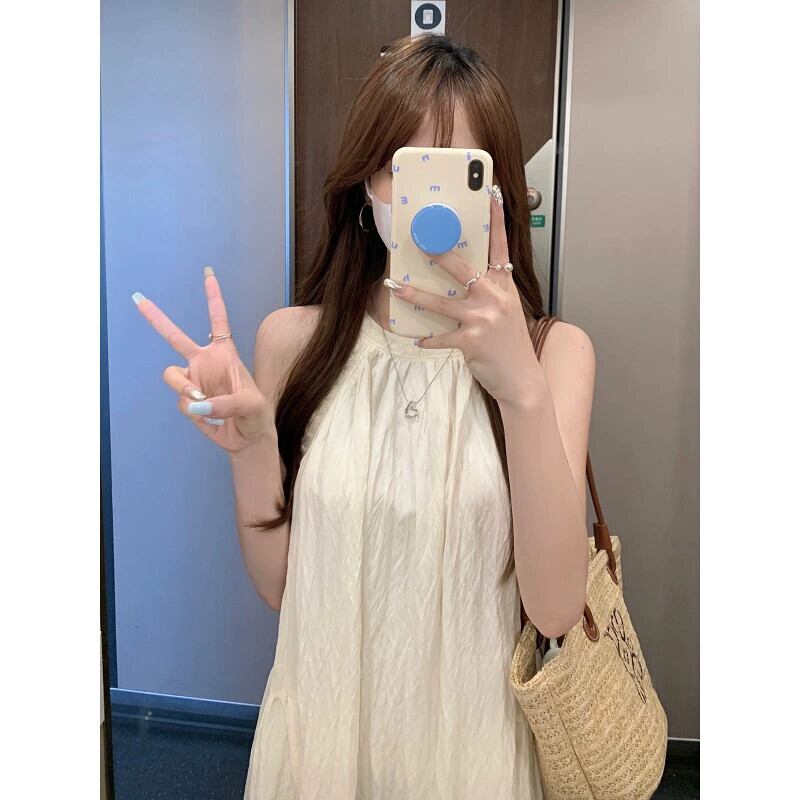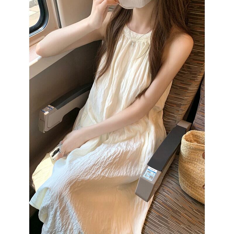 ホリデースタイルのホルターネックサスペンダードレスの女性の夏2023新しい質感、優しくエレガントなスーパーフェアリー膝上ロングスカート サマー 夏物 missk18674647300