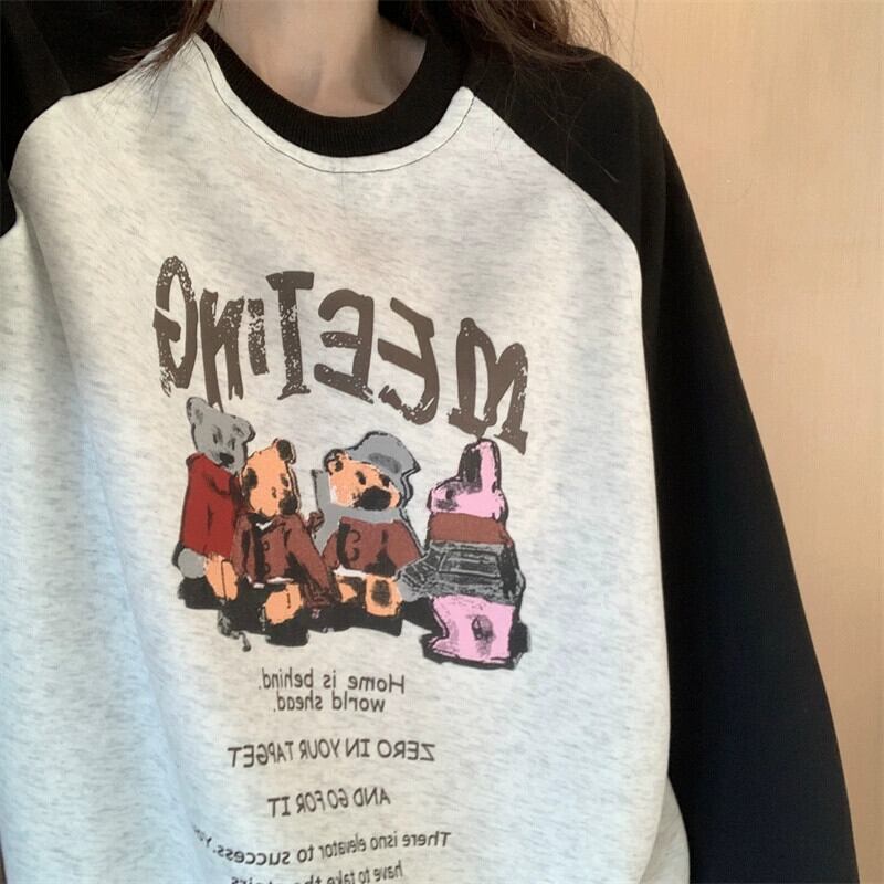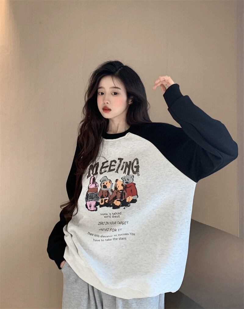 ラグランスリーブ長袖トレーナー女性初秋 2023 新ファッション多用途レタープリント薄型カラーブロックプルオーバートップ ロング オータム 秋物 missk2646367860
