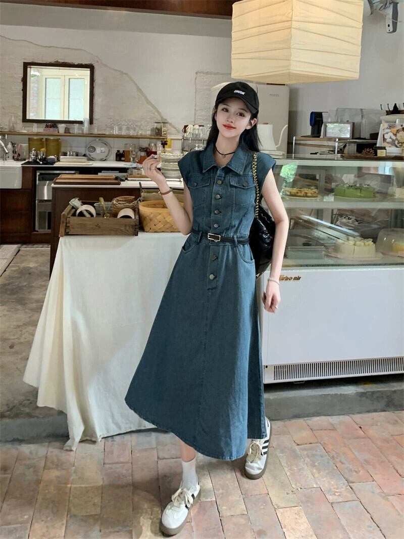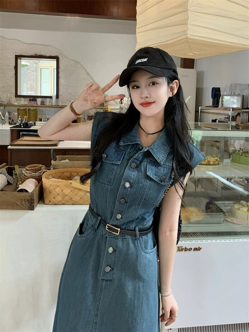 2023 夏の新スタイルレトロスタイルのポロ襟シンプルなウエスト痩身気質ファッショナブルな A ライン半袖ドレスの女性 サマー 夏物 Aライン missk76397078187