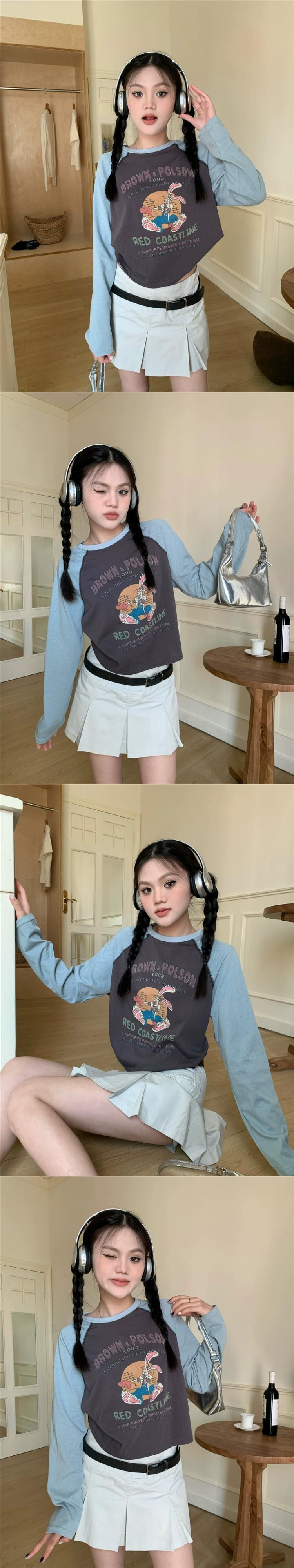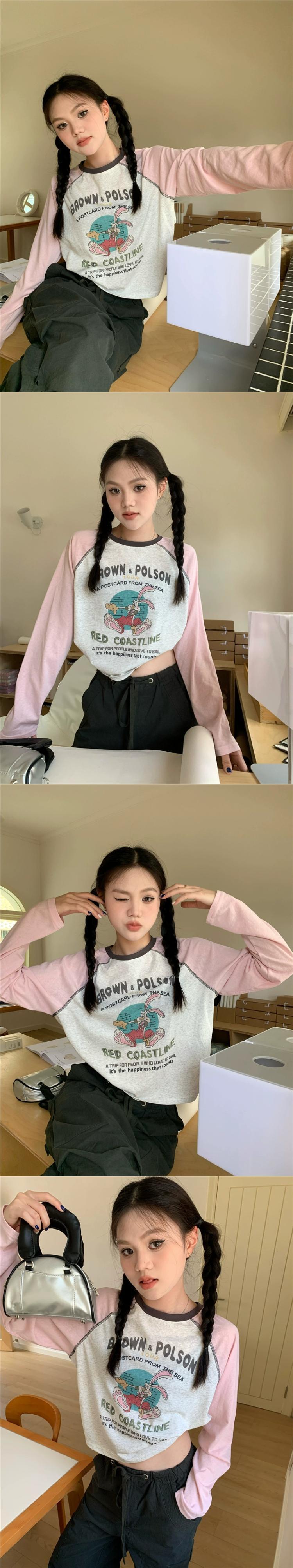 コントラストカラーラグランスリーブ Tシャツ女性秋 2023 新しいアメリカンレトロ漫画プリントルーズショート長袖トップ ロング オータム 秋物 missk61055546914
