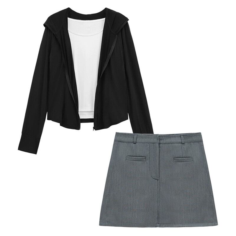 フード付き長袖日焼け防止カーディガン U ネックレース Tシャツスカートスカート女性秋 2023 新しいファッションスーツ ロング オータム 秋物 missk24939949248