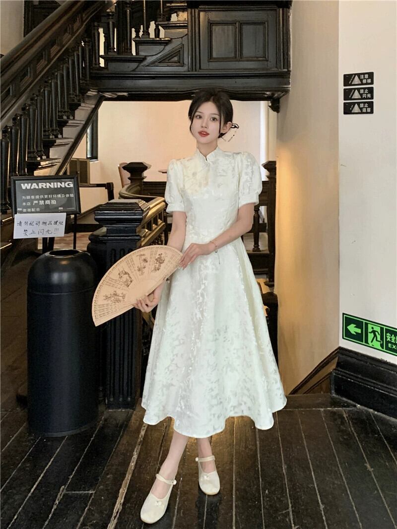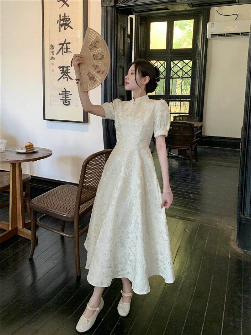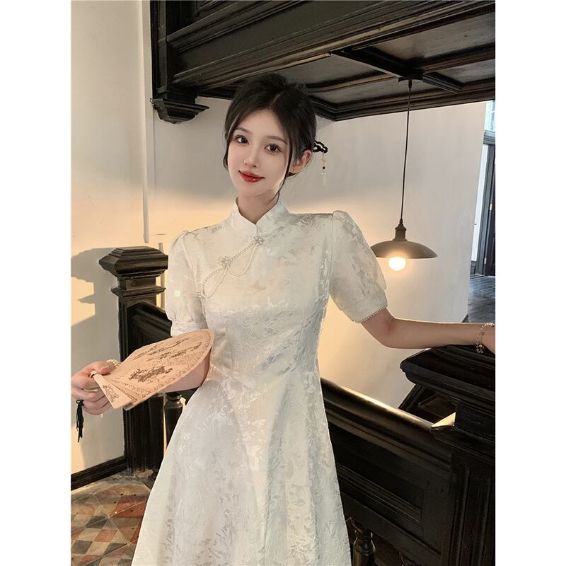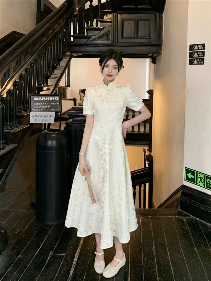 中国風の改良されたチャイナドレスの女性の夏 2023 新しいスタイル優しい風スタンドカラーウエスト痩身ロングスカート サマー 夏物 missk84827215402