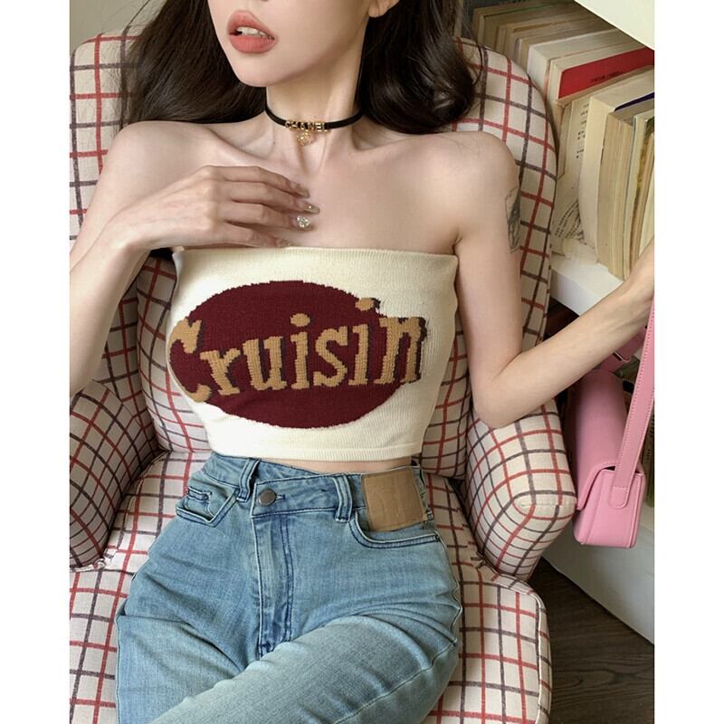 ホットへそ出しショートアウターウェアニットチューブトップ夏 2023 新しいスリムフィットニッチデザインインナートップ女性 サマー 夏物 missk37778222384