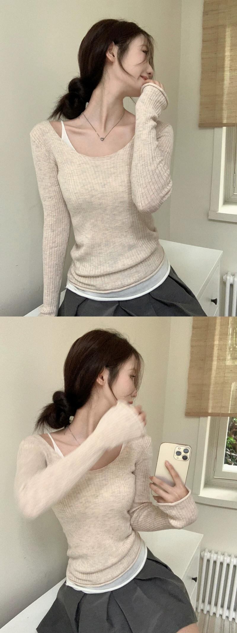 2023 秋の新スタイル優しいスタイルファッショナブルな気質痩身偽ツーピースデザイン長袖セーター女性 ロング オータム 秋物 missk26997879038