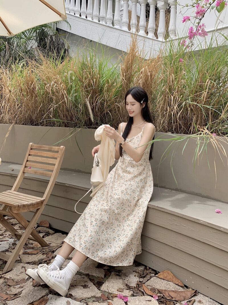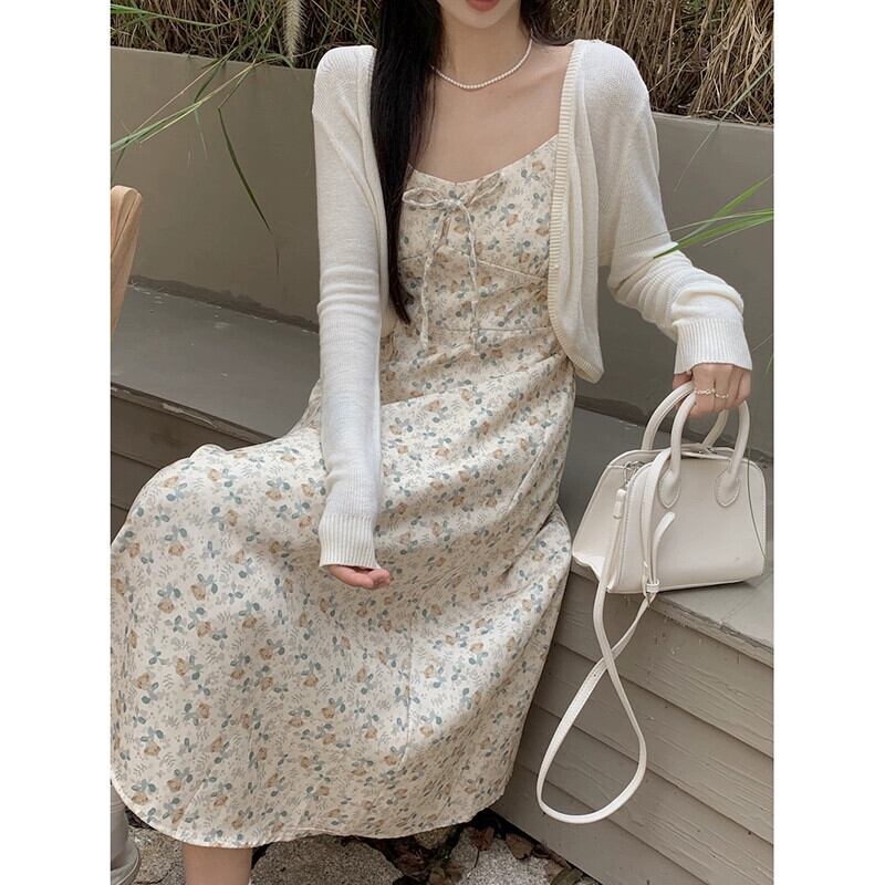 コーデュロイ花サスペンダードレス女性秋 2023 新しい甘いフレンチウエスト痩身ミッドレングススカート 大人ガーリー スウィート キュート カジュアル オータム 秋物 花柄 missk70678293374