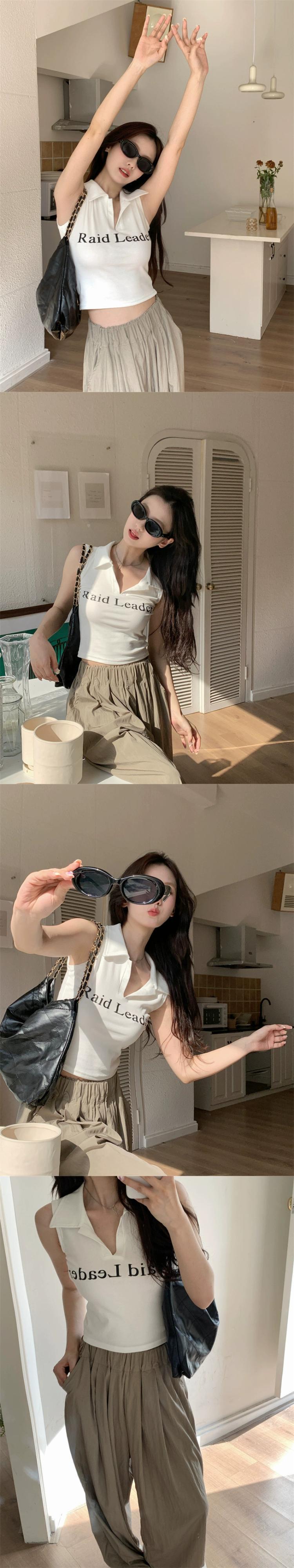 ポロカラーノースリーブベスト Tシャツ女性夏 2023 新しいアメリカンデザインレタープリントトップトレンディ サマー 夏物 missk26509206440