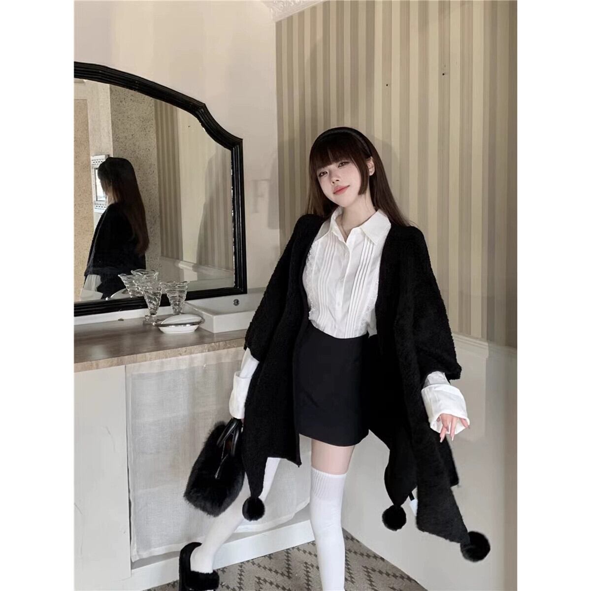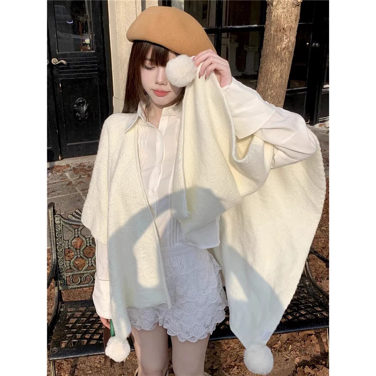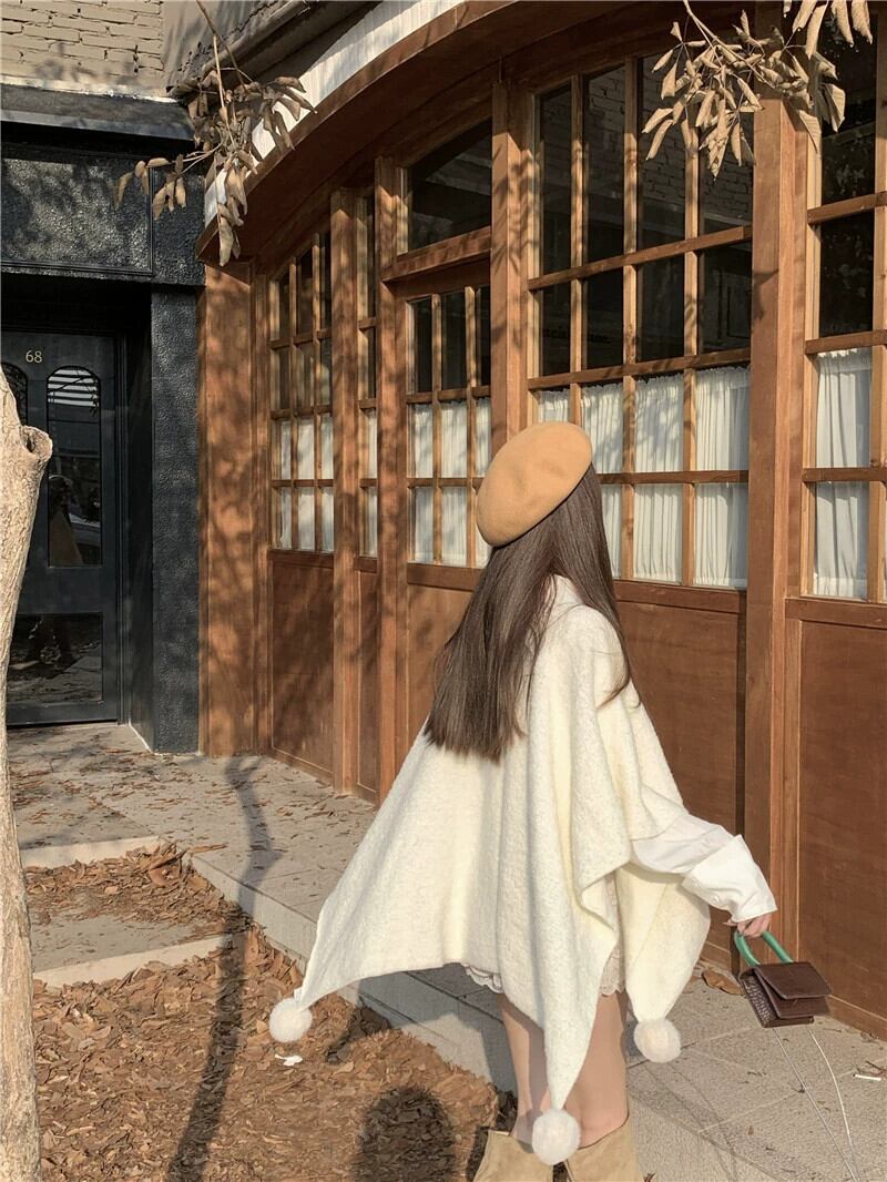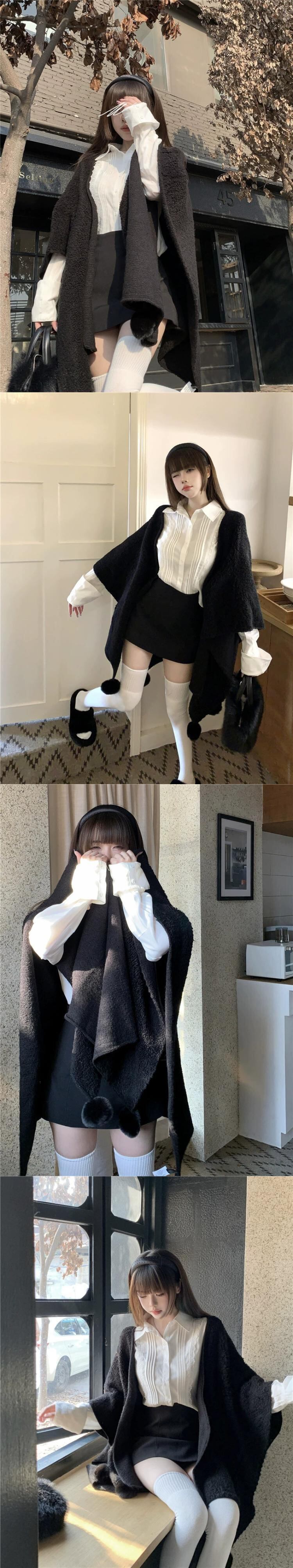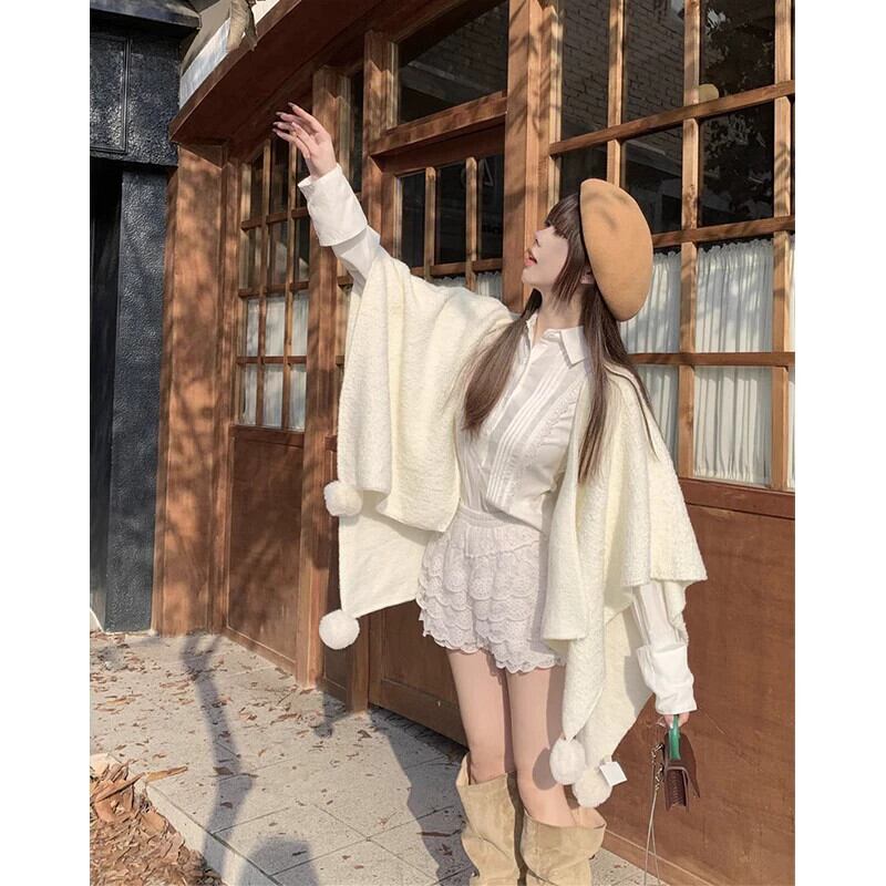 ルースソリッドカラーのファーボールケープショールジャケット女性秋 2023 新デザインファッショナブルなニッチ多目的セーター オータム 秋物 missk15597131792
