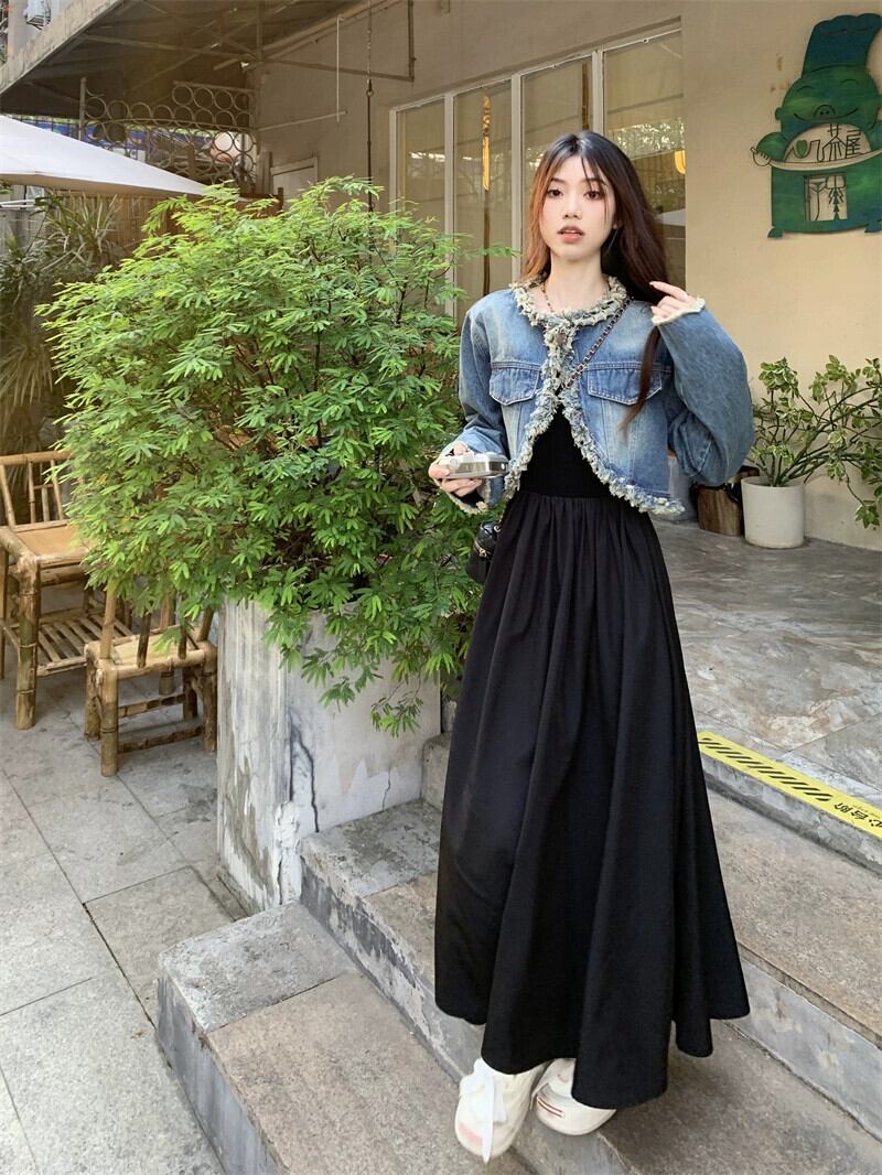 色:ジージャン,黒いドレス