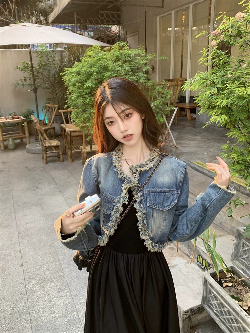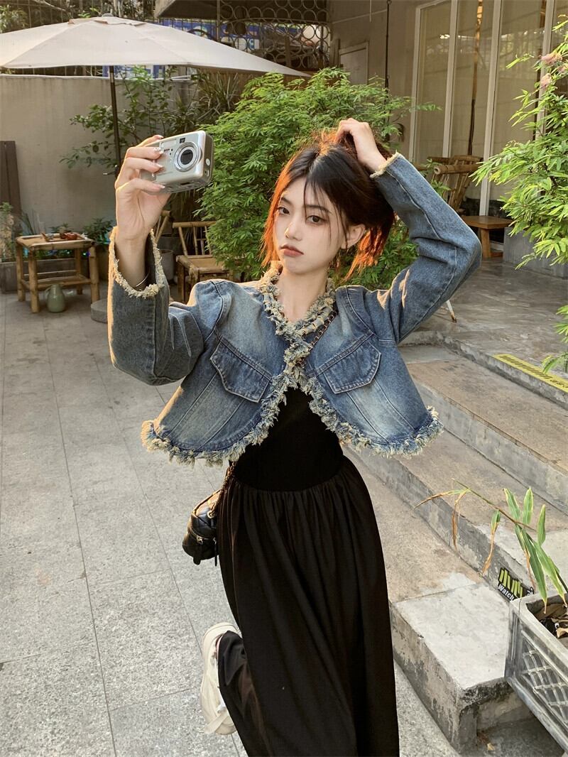 エドローエッジテルショートデニムジャケットベストドレスレディース秋2023新しいツーピーススーツトレンディ オータム 秋物 missk49759273746