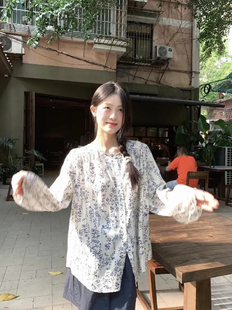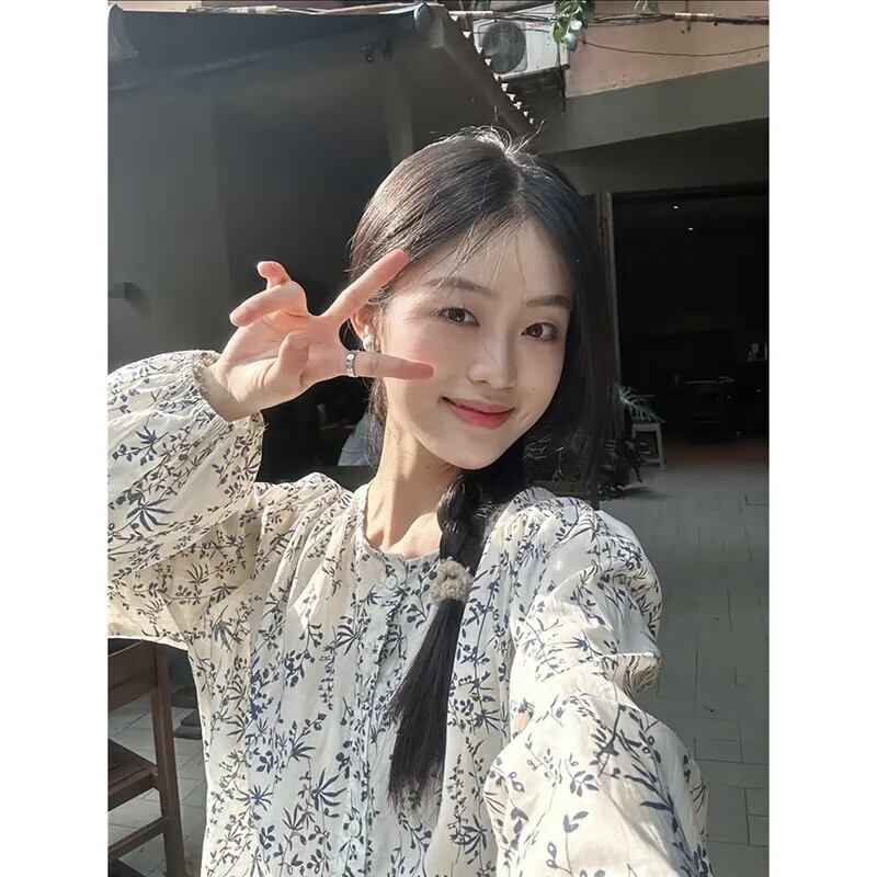 甘い花柄長袖日焼け防止シャツ女性の 2023 秋の新しいラウンドネックデザインニッチルーズトップ ロング 大人ガーリー スウィート キュート カジュアル オータム 秋物 Oネック missk22665478797