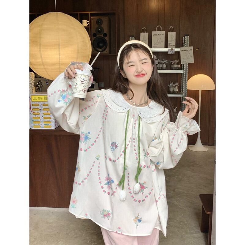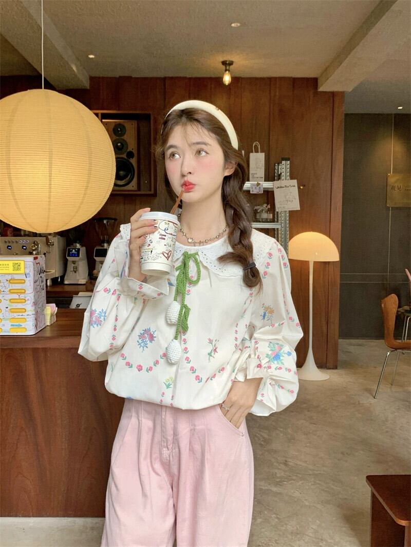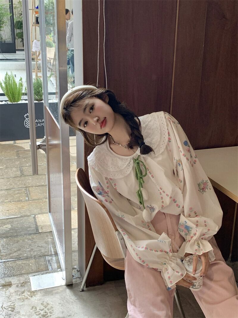 ドールカラーシャツレディース2023秋新作甘いデザイン花柄レースゆったり長袖トップス ロング 大人ガーリー スウィート キュート カジュアル オータム 秋物 missk43832177875