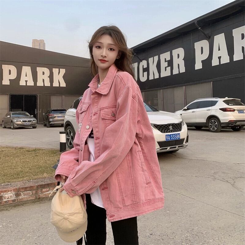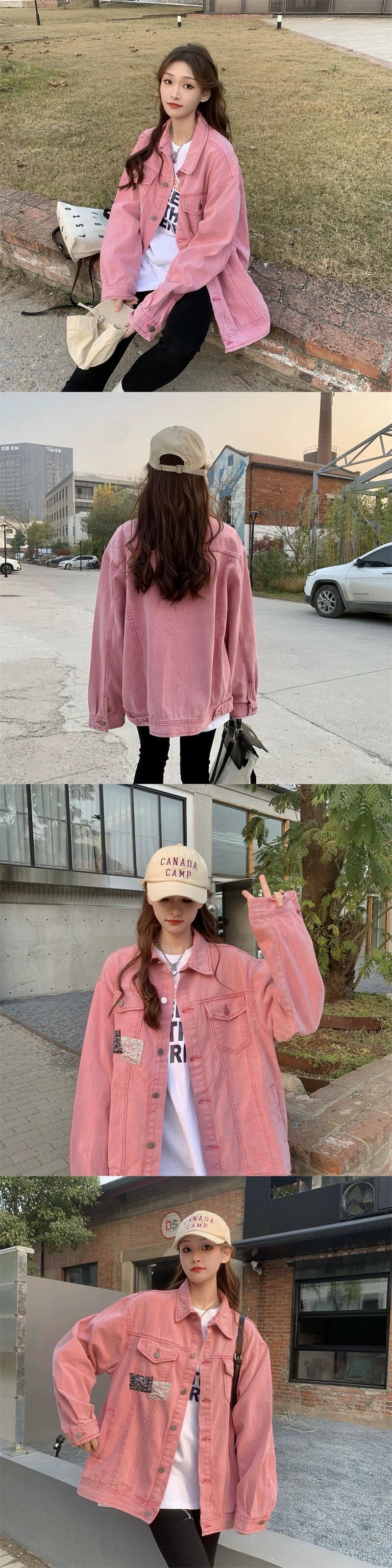 ピンクストリートデニムジャケットの女性の秋と冬バージョン 2023 新デザインルーズ bf 長袖ジャケットトレンディなトップ ロング オータム 秋物 ウィンター 冬物 missk30301180361