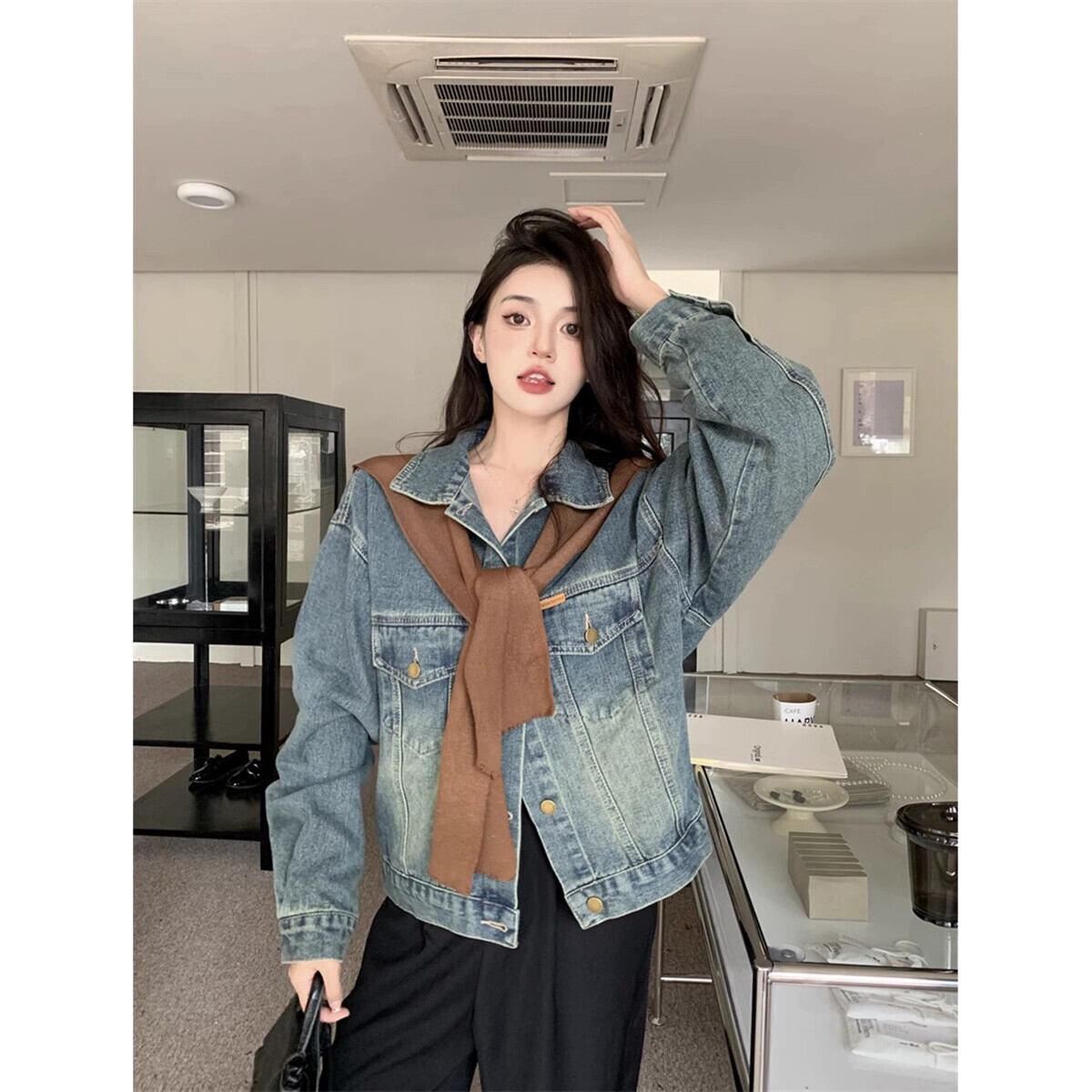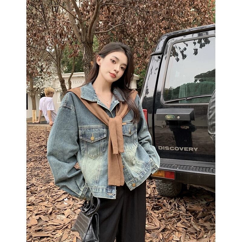 香港スタイルのレトロラペル長袖デニムジャケット秋 2023 新しい緩いファッショナブルなデザインカーディガントップ女性 ロング オータム 秋物 missk12193724025