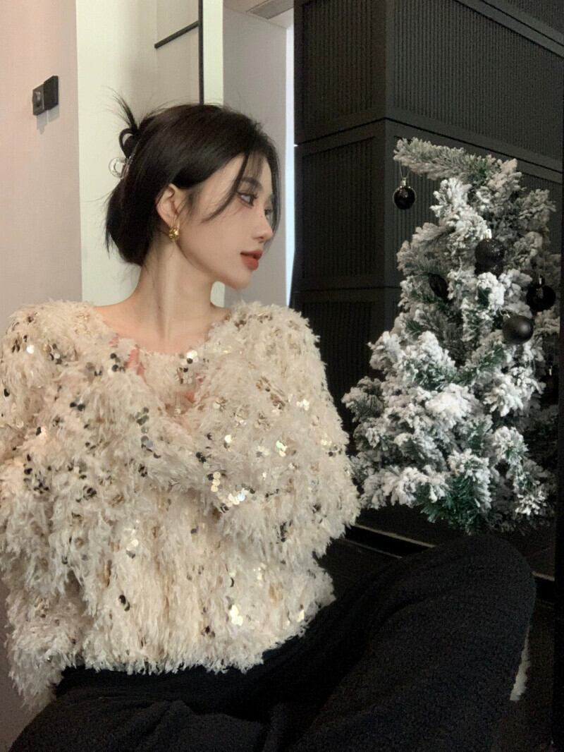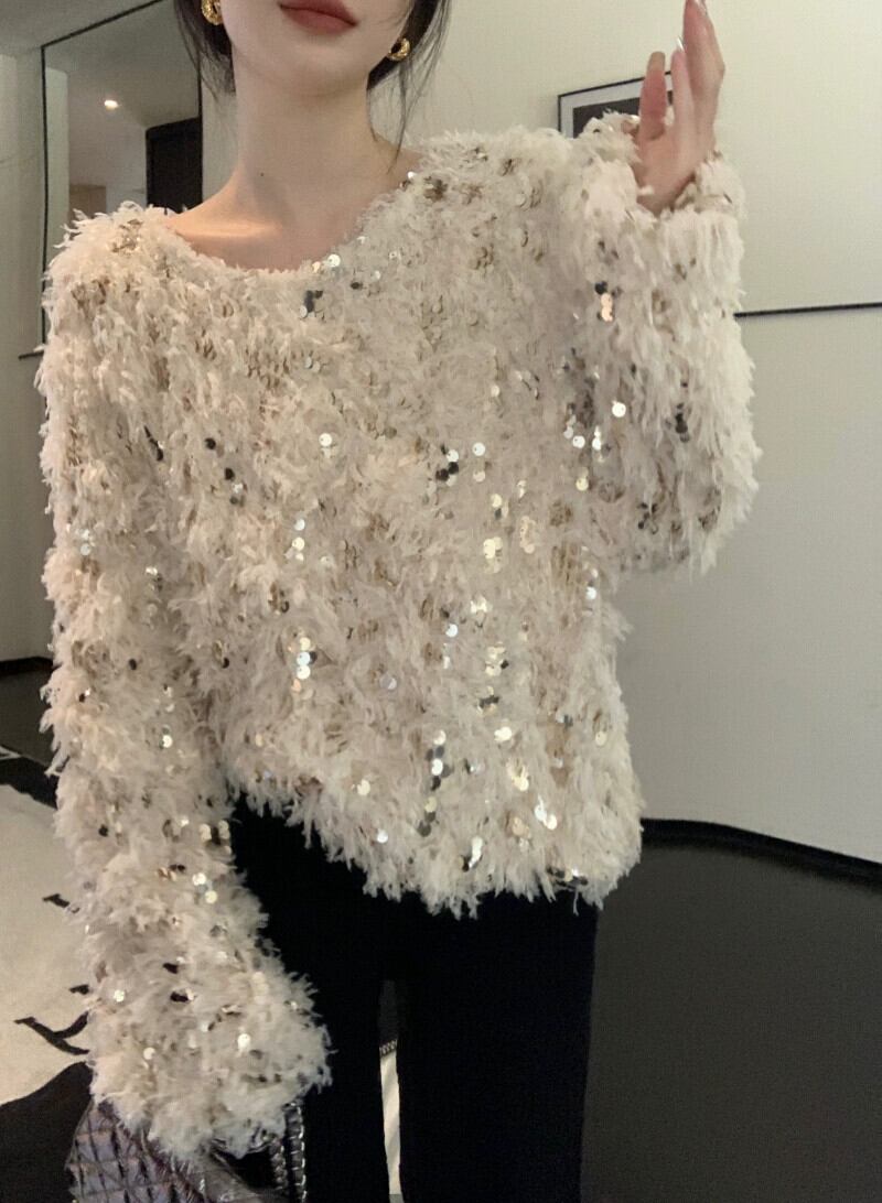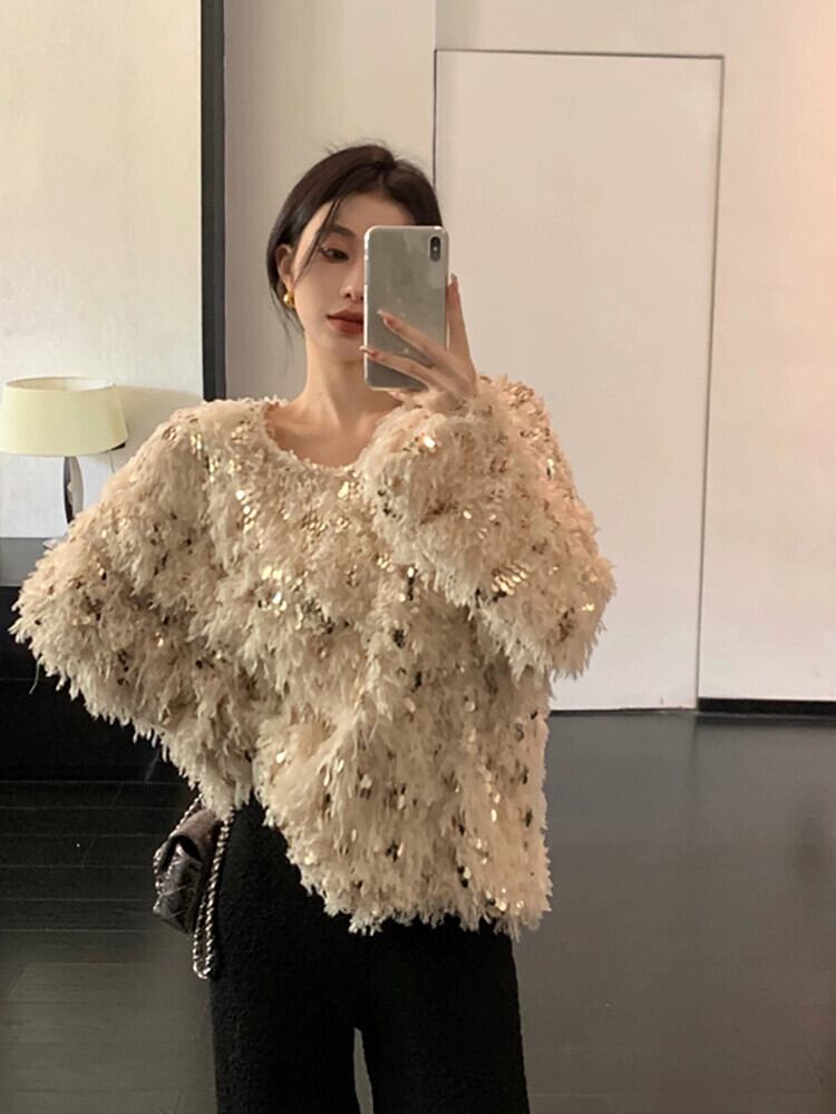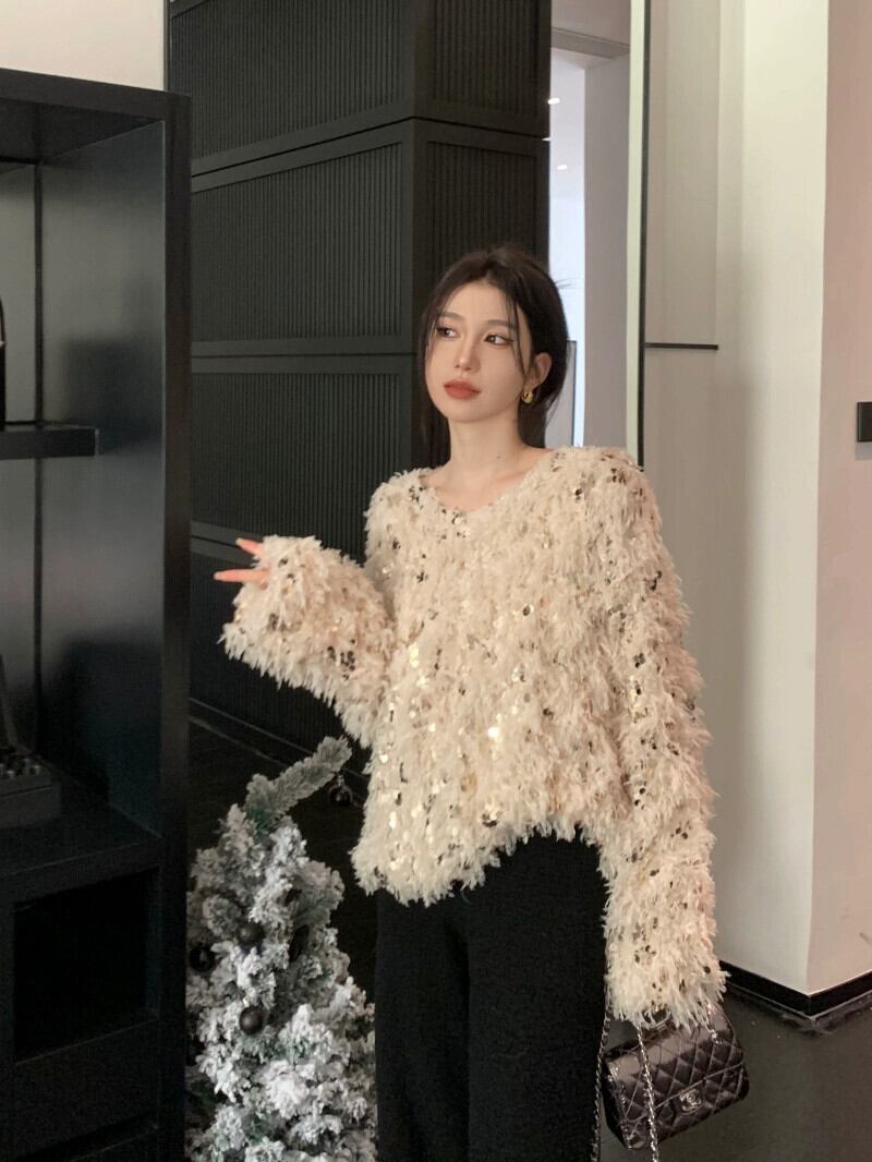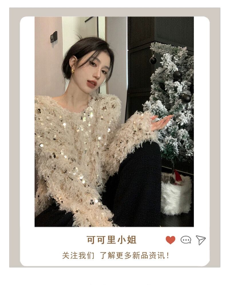 雰囲気のあるスパンコールセーターレディース秋冬 2023 新デザインニッチ重工業ルーズアウター長袖トップ ロング オータム 秋物 ウィンター 冬物 missk76132537308