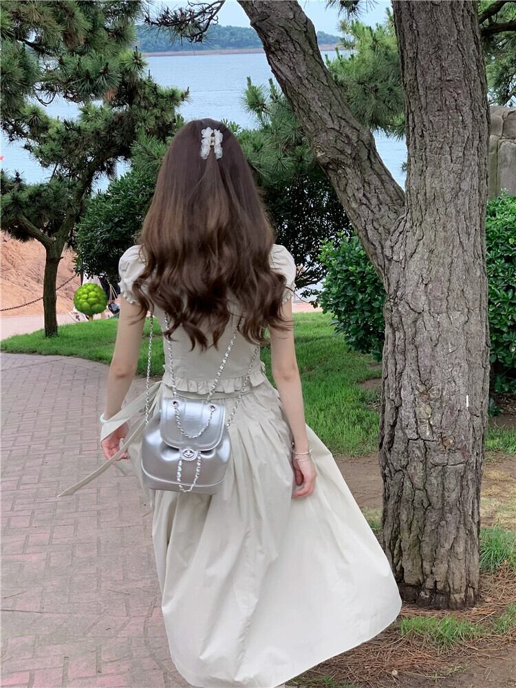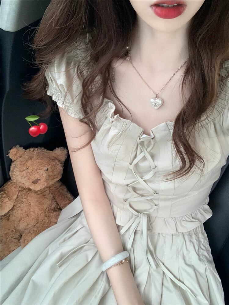 ブレストスタイルのウェア、ストラップで耳を縁取った半袖シャツトップ、ハイウエストのミモレ丈スカート、新しいサマースーツの女性 夏物 missk51600087345