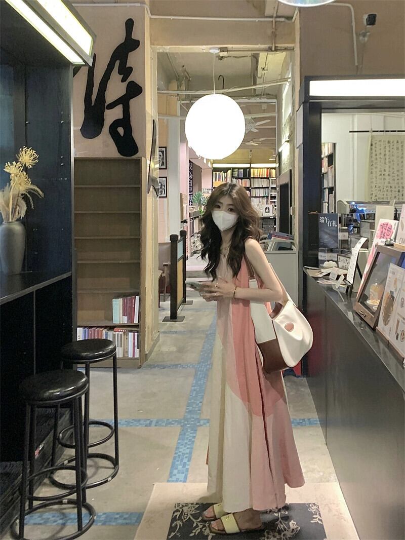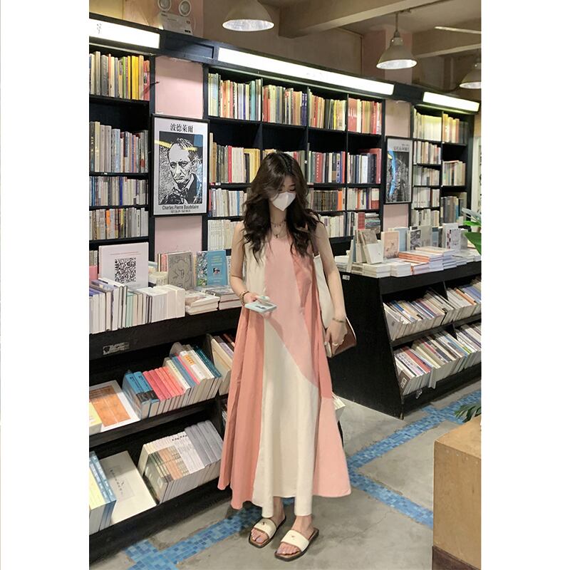 カラーブロックノースリーブドレスの女性の夏 2023 新しいレトロなデザインルーズ肌カバーホリデースタイルベストロングスカート サマー 夏物 missk91439174419