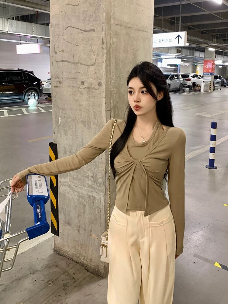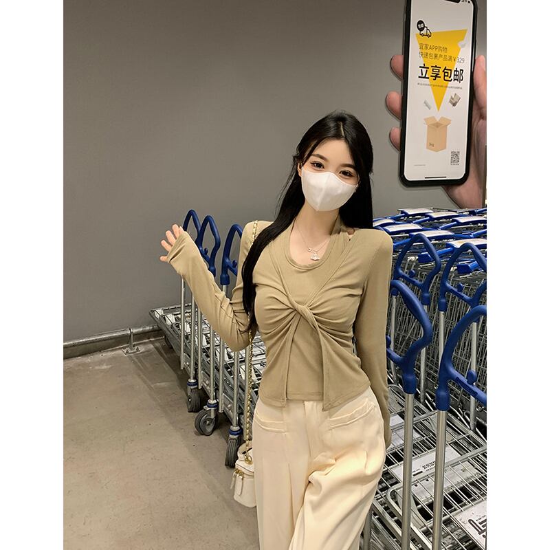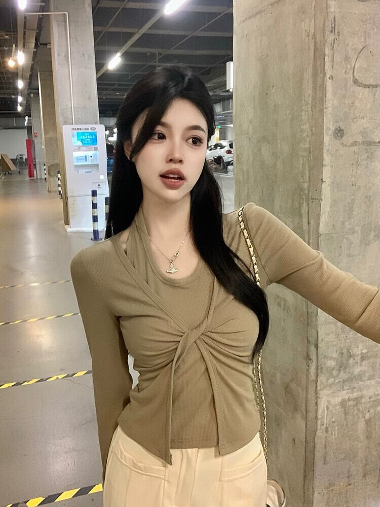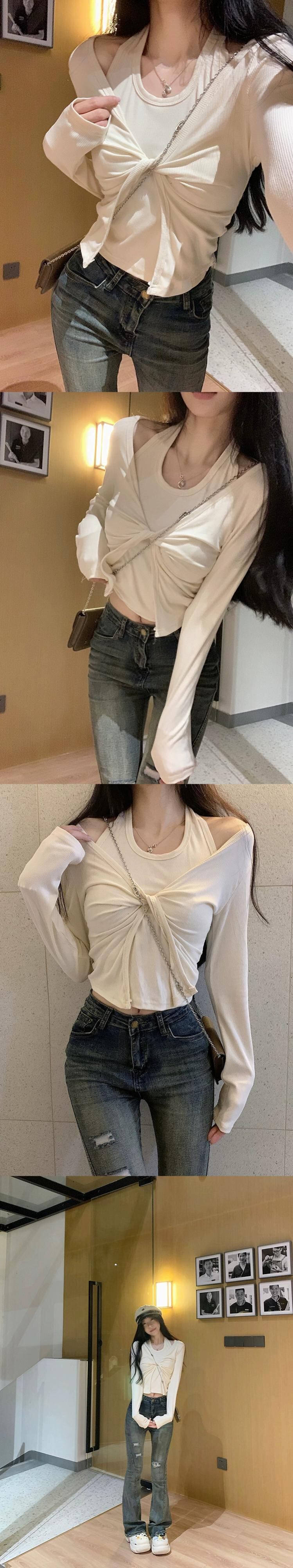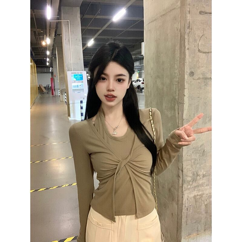 フェイクツーピースホルターネック長袖Tシャツレディース2023年秋新作フレンチニッチデザインスリムスリムトップ ロング オータム 秋物 missk11182717753