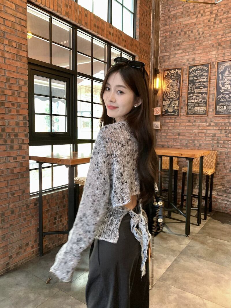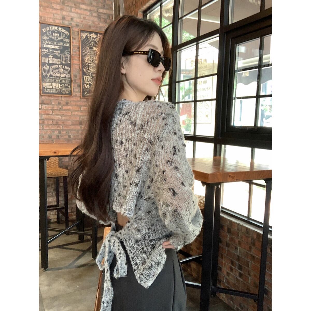 怠惰なスタイル長袖セーター女性秋 2023 新しいレトロなデザインのストラップレスベストマシンニッチトップ ロング オータム 秋物 missk90041256220