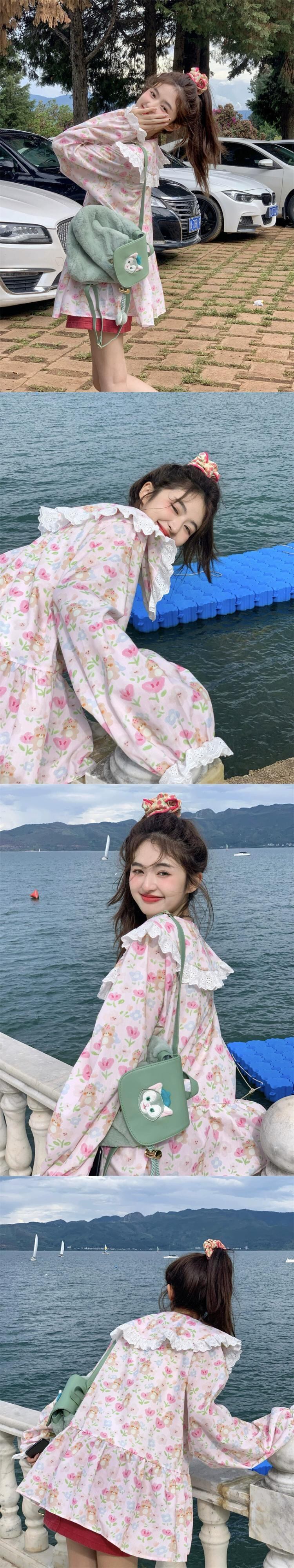 甘い年齢を減らすドールカラーシャツの女性の秋 2023 新しいベルスリーブデザイン花柄ルーズ長袖トップ ロング 大人ガーリー スウィート キュート カジュアル オータム 秋物 missk18540153537