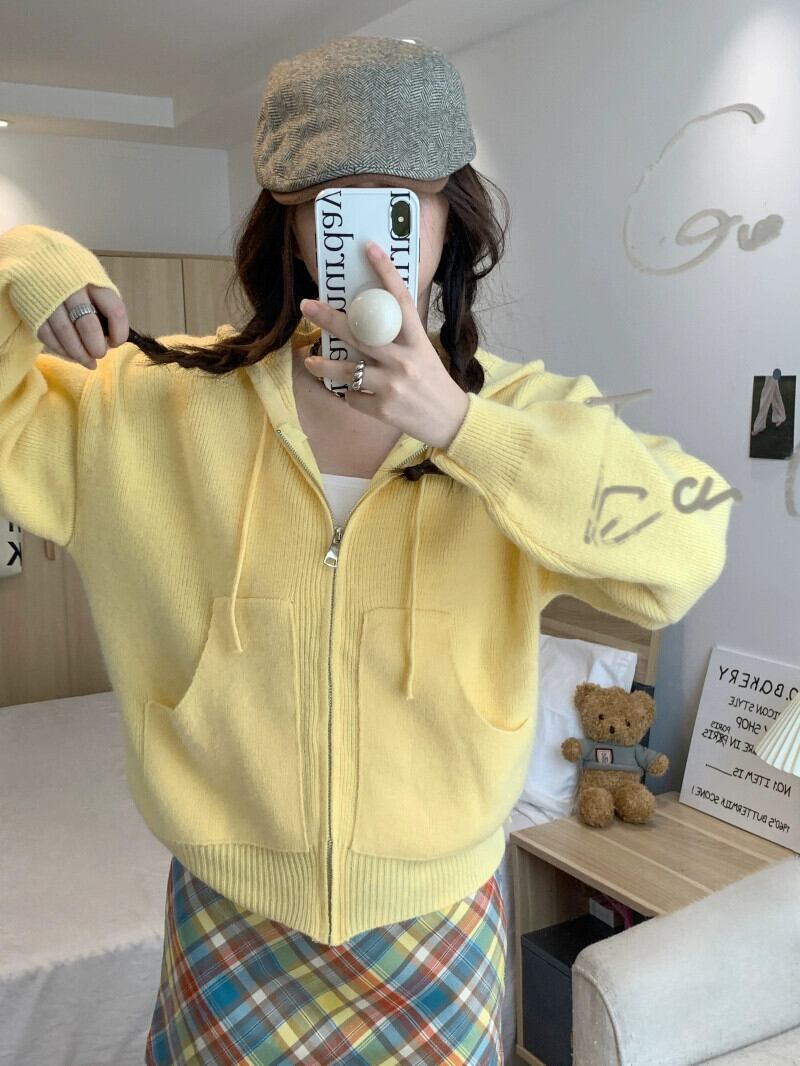 フード付き長袖セータージャケット女性秋 2023 新しいカレッジスタイルソフトとワックスのようなルーズデザインカーディガンセーター ロング オータム 秋物 missk47390007491