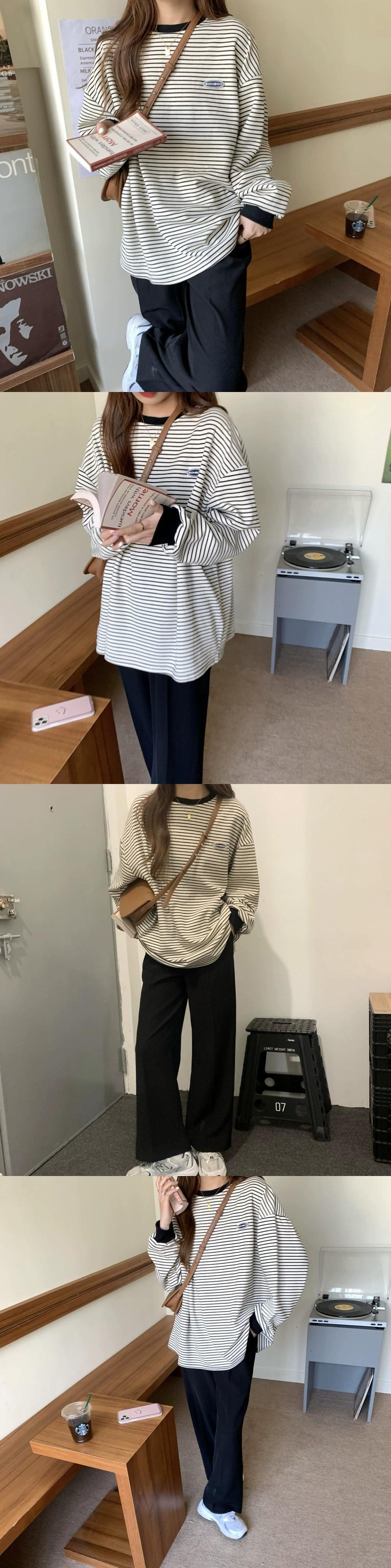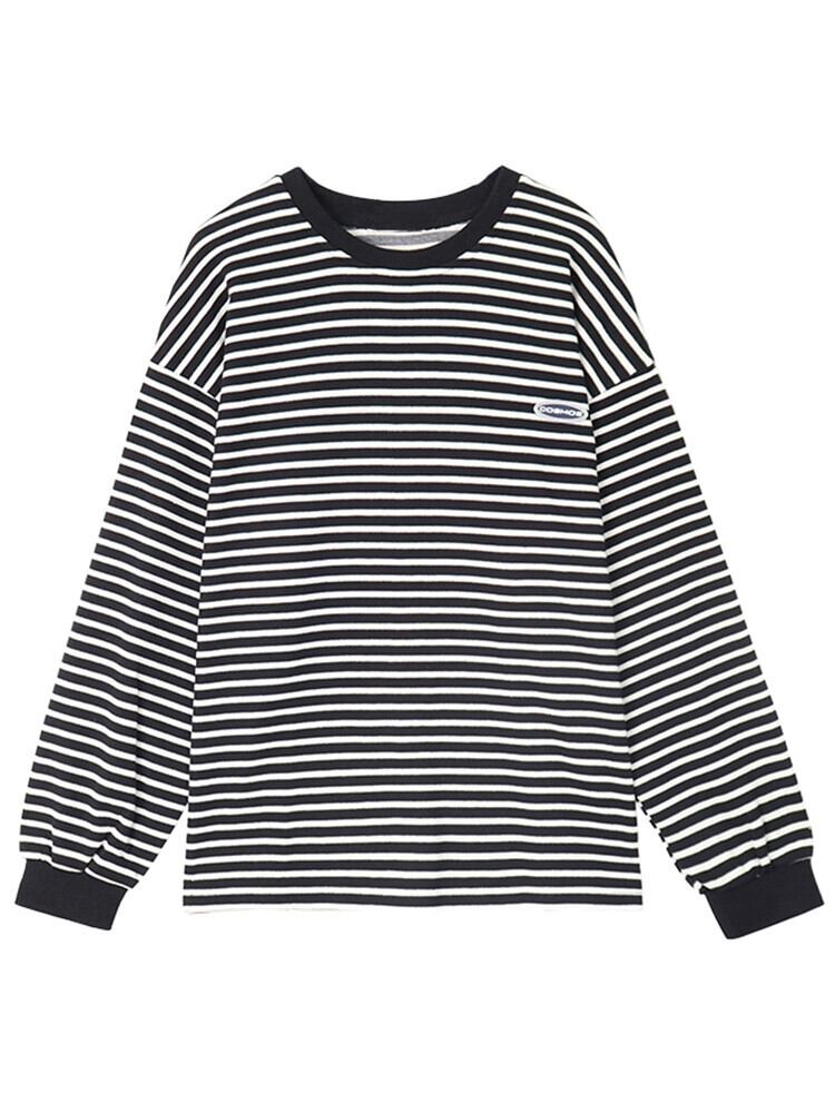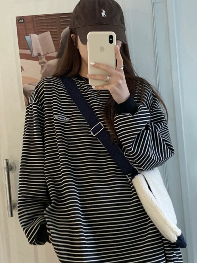 BF スタイルストライプ長袖トレーナー女性の初秋 2023 新しいルーズデザインラウンドネックプルオーバートップトレンディなイン ロング オータム 秋物 Oネック missk71448583784