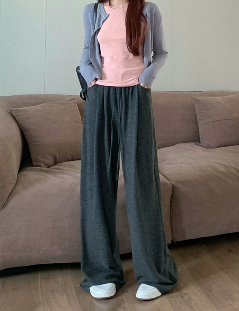 巾着弾性ウエストカジュアルパンツ女性秋バージョン 2023 新しいハイウエスト痩身ワイド脚床長ズボンウォーキングパンツ ハイウェスト エラスティック 伸縮 オータム 秋物 ワイドレッグ ワイドパンツ missk91138839847