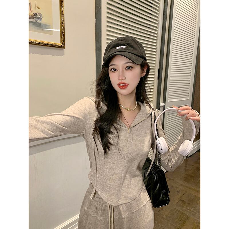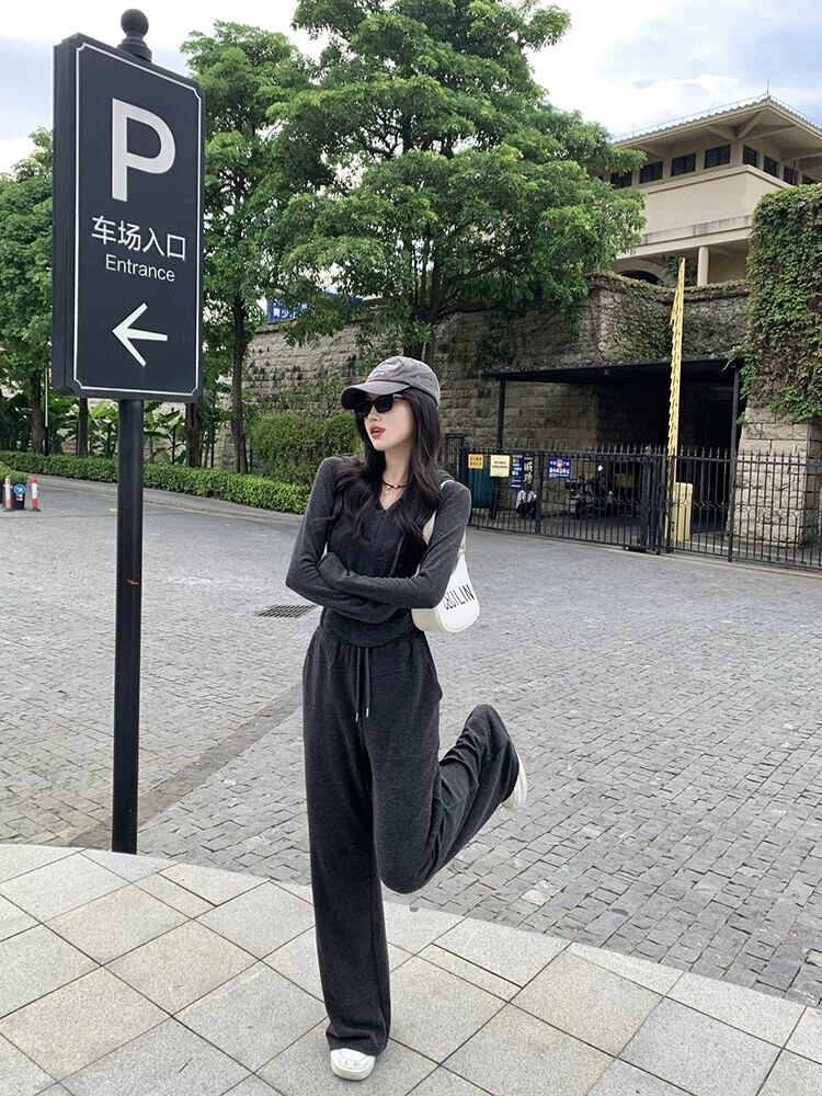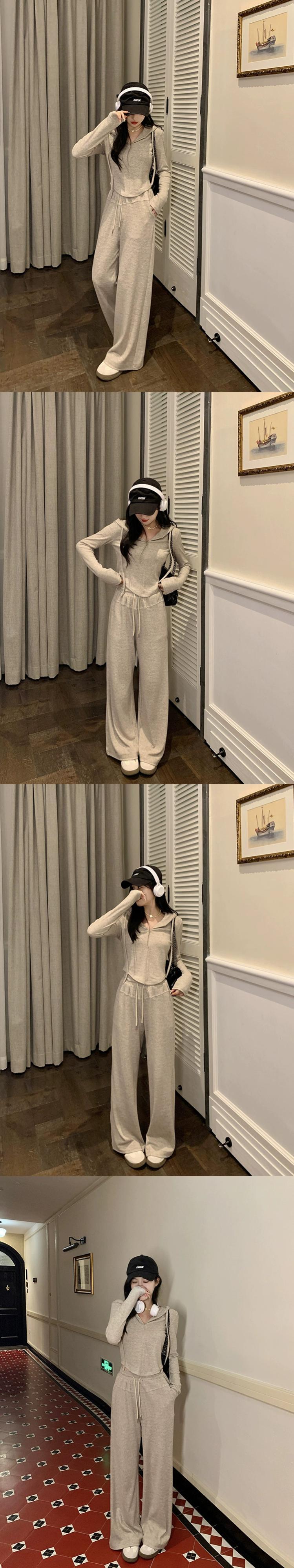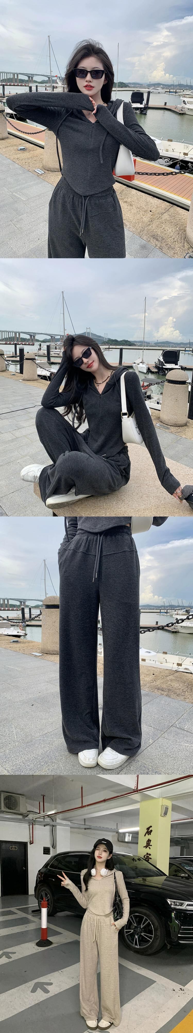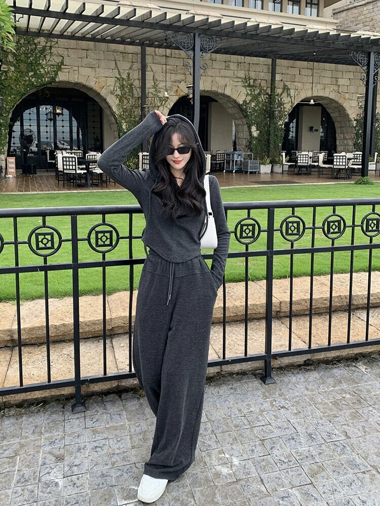 -エンドスリムフィット長袖フード付きジャケットワイドレッグカジュアルパンツ女性秋2023新しいファッションスーツ ロング オータム 秋物 missk8126922107