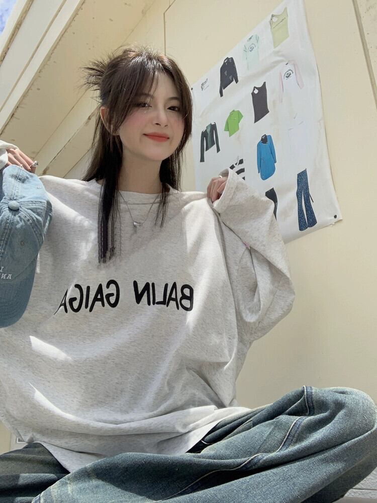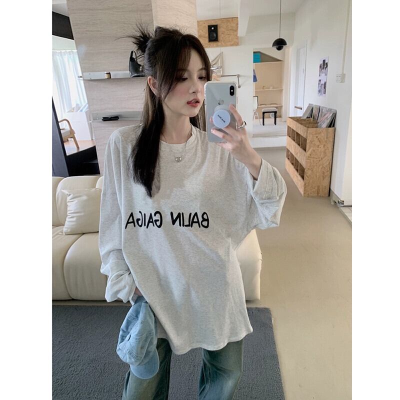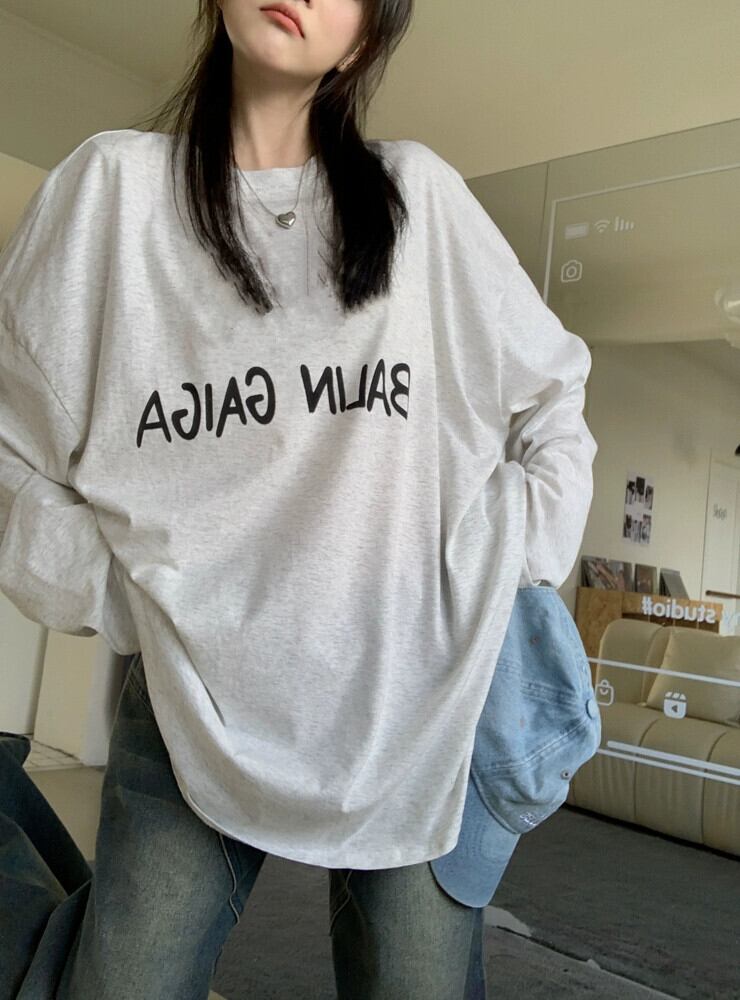 2023 初秋怠惰なスタイルシンプルなルーズレタープリント多用途ラウンドネック長袖 Tシャツ女性 ロング オータム 秋物 Oネック missk83121780302