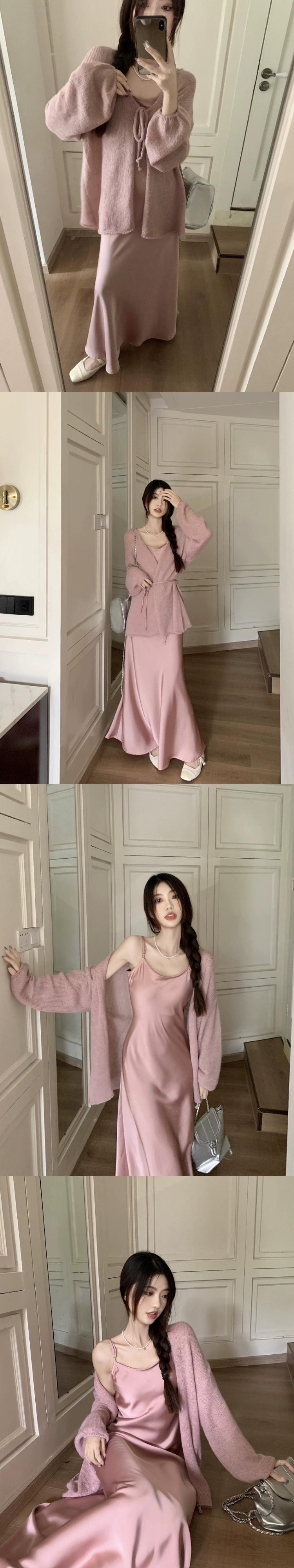 色:ピンクのドレス,アプリコットドレス,ピンクのカーディガン,アプリコットカーディガン