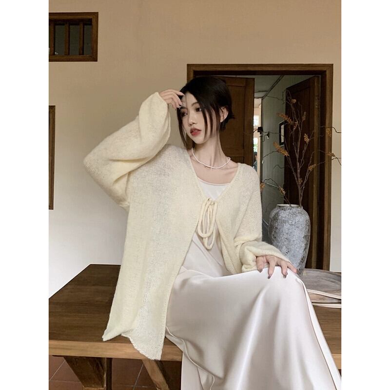 怠惰なスタイルストラップ長袖ニットカーディガンロングサスペンダードレス女性秋 2023 新しいファッションツーピースセット オータム 秋物 missk18322879227
