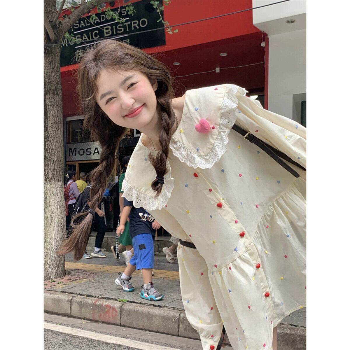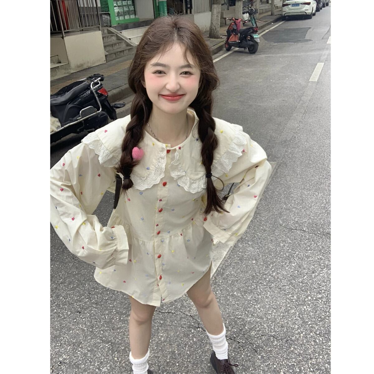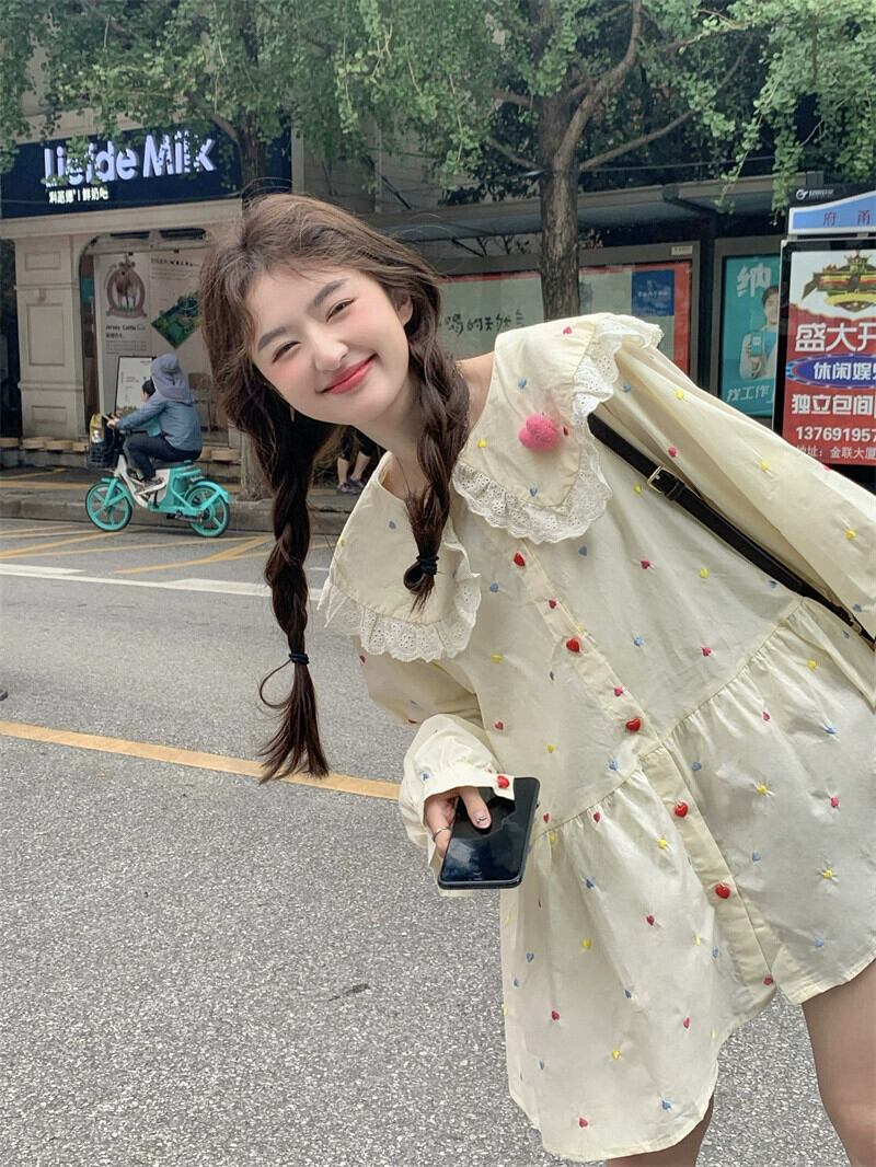 甘いスタイルのレースエッジ人形の襟長袖ドレス女性秋 2023 新しい重工業刺繍年齢軽減ショートスカート ロング 大人ガーリー スウィート キュート カジュアル オータム 秋物 missk33007781406